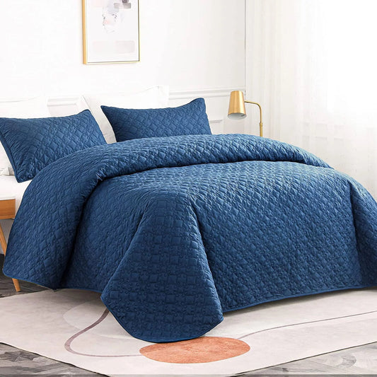 Quilt Set Twin Size, Soft Microfiber Lightweight Bedspread Coverlet Bed Cover (Diamond Pattern) for All Seasons, Navy, 2 Pieces (Includes 1 Quilt, 1 Sham)