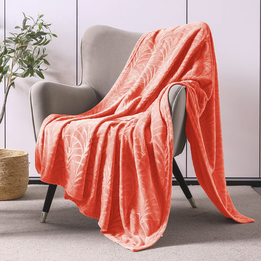 Flannel Throw Blanket for Couch, Soft Plush Fleece Throw Blanket with Decorative Palm Leaves Design, Coral, 50x60 Inch′