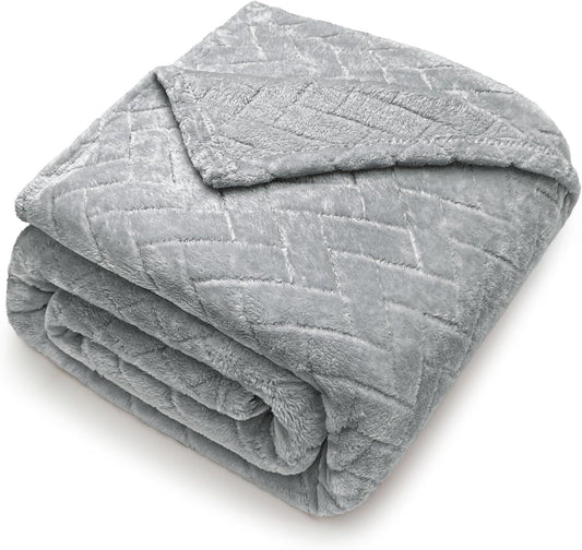 Fuzzy Fleece Throw Blanket for Couch, Fluffy Warm Soft Jacquard Blankets for Fall Winter, Lightweight and Cozy, 50x70 Inch