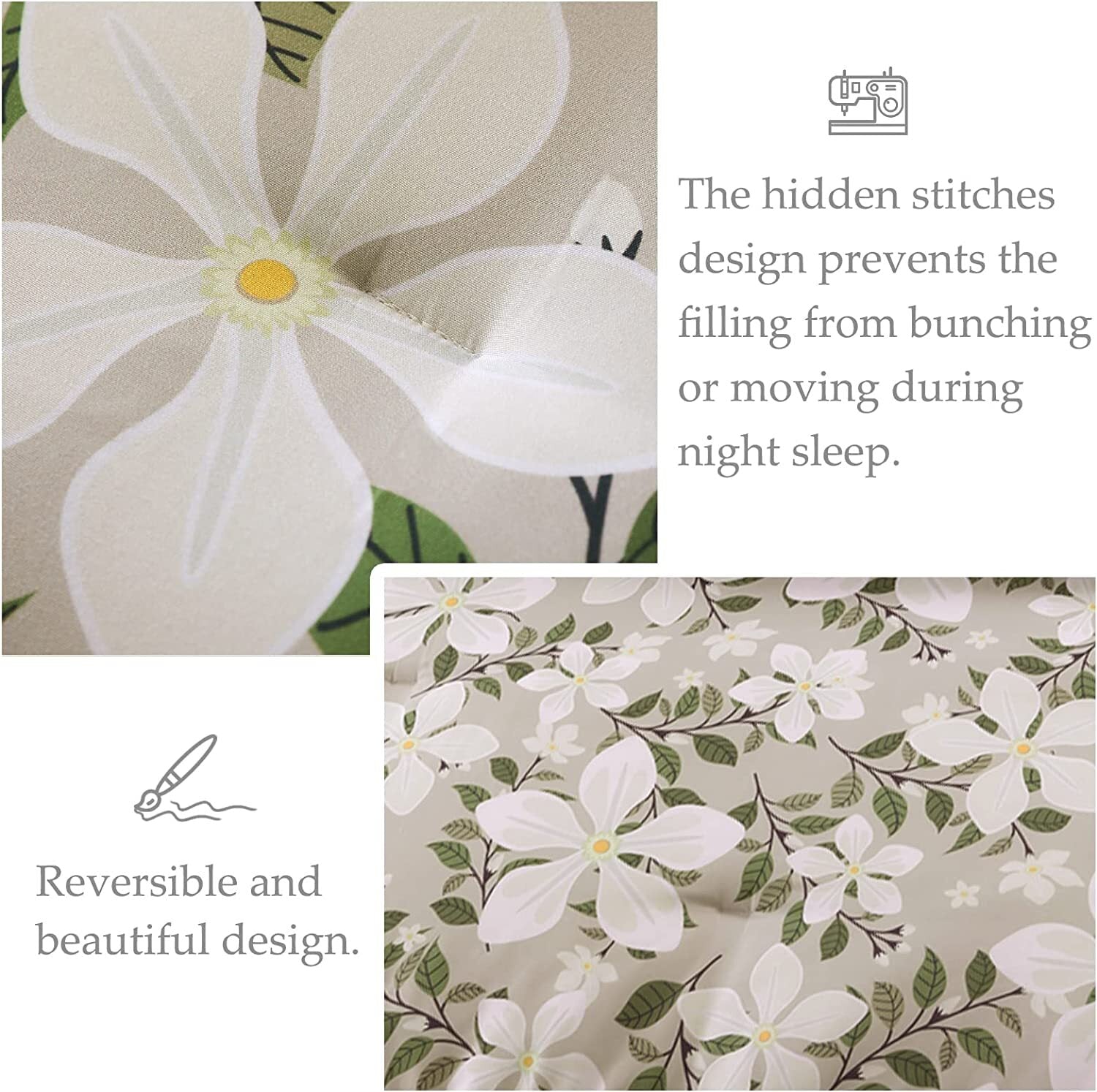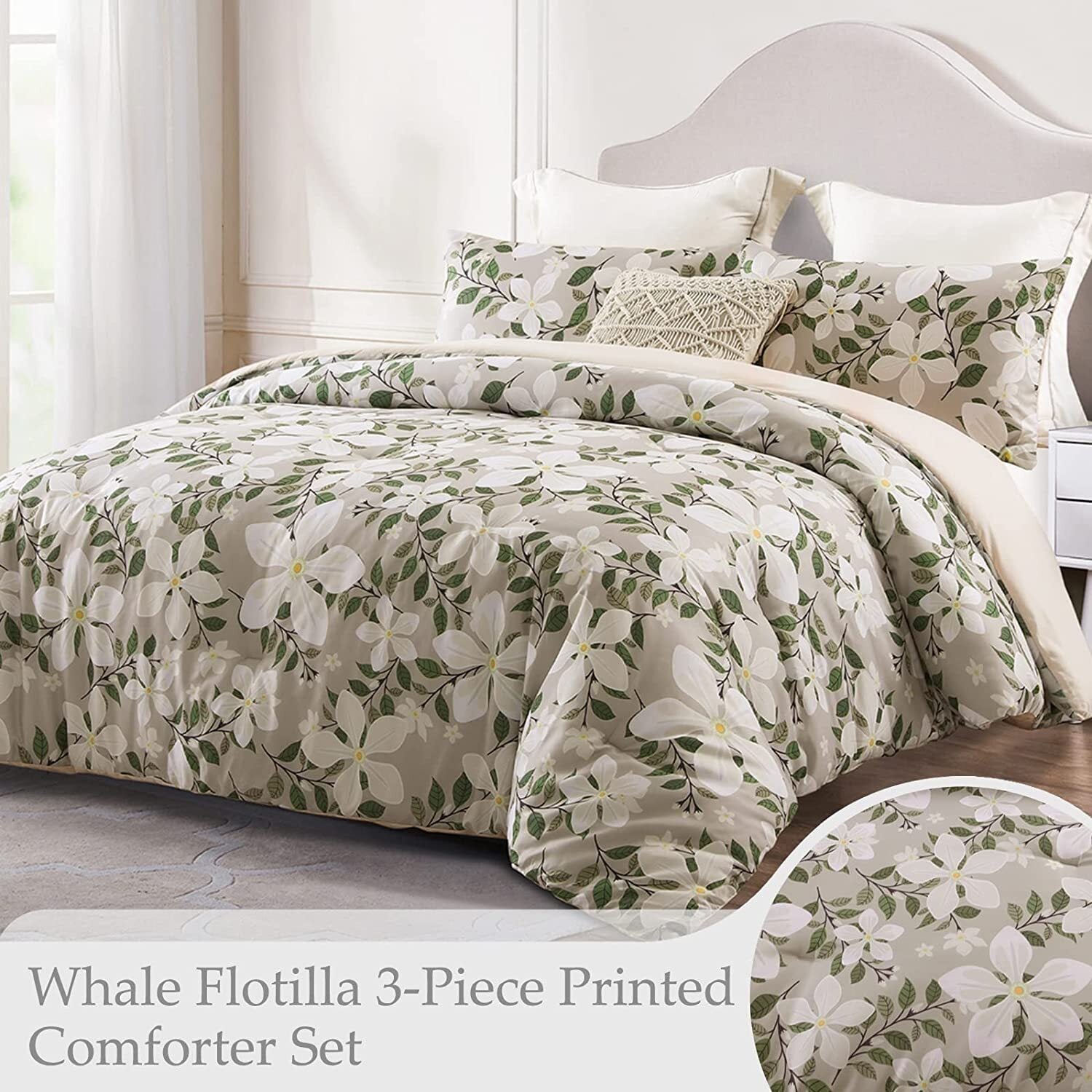 Whale Flotilla 3-Piece King Comforter Set, Soft Reversible Bedding Comforter Sets, Floral Printed Down Alternative Comforter Duvet for All Seasons, Bone