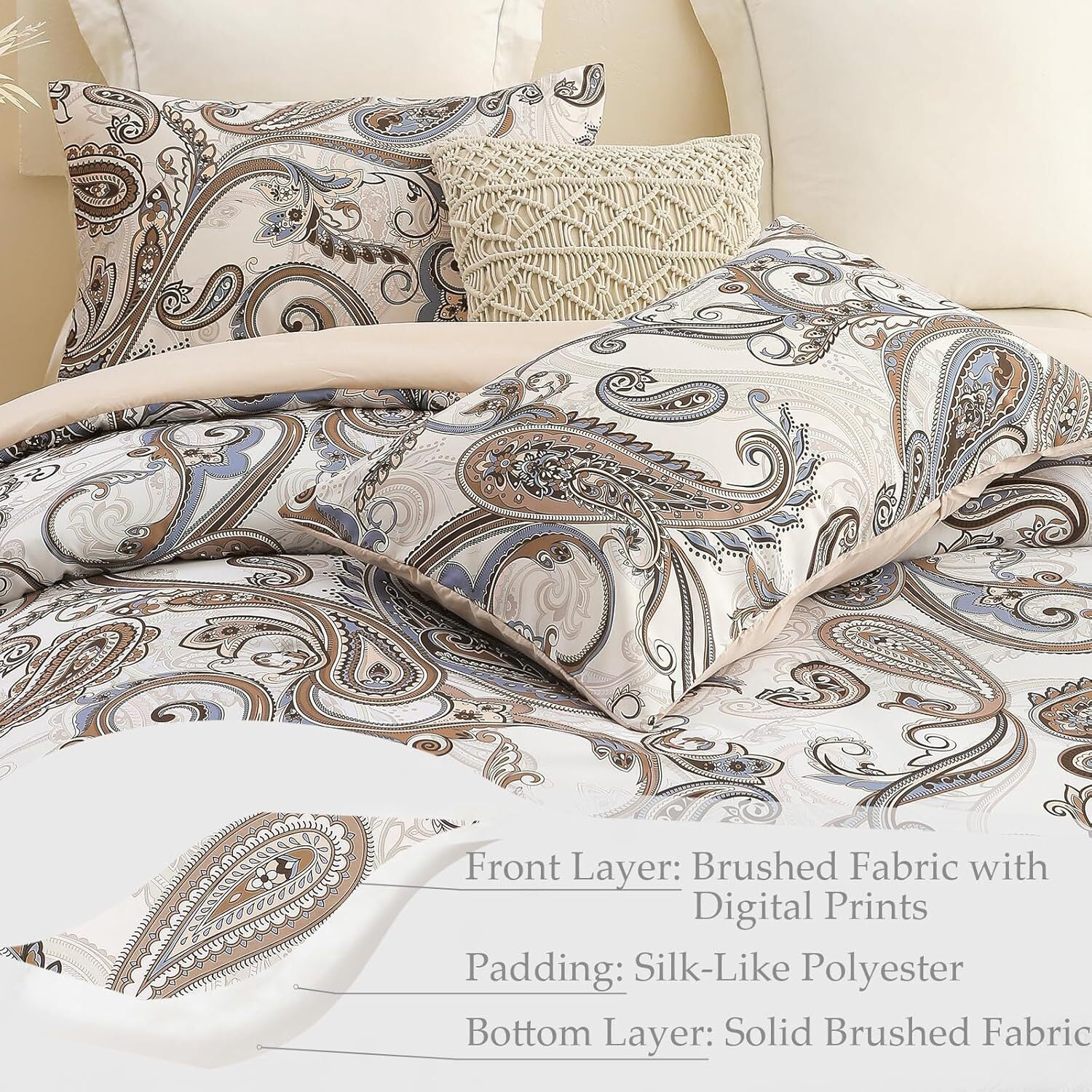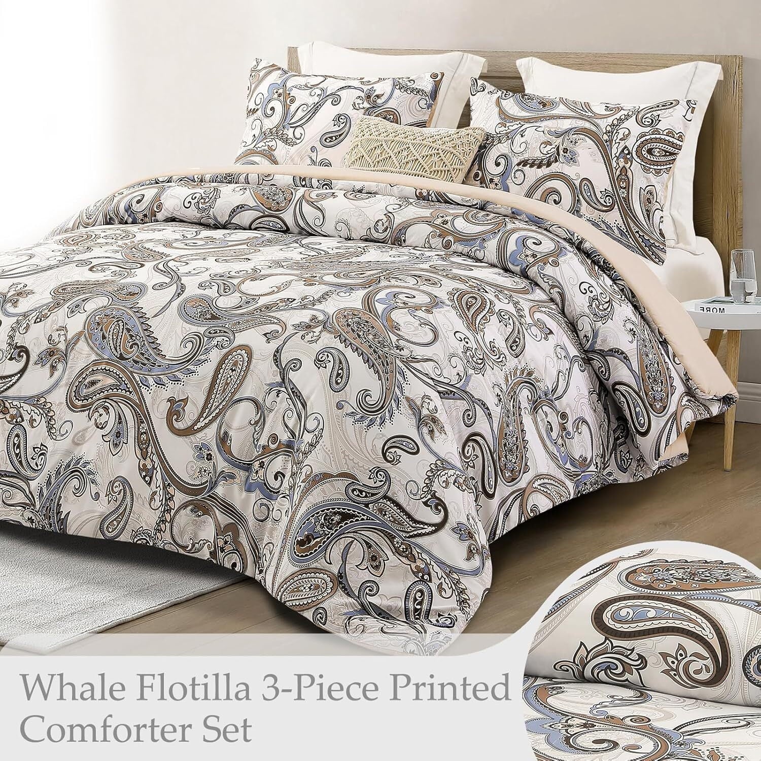 Whale Flotilla King Comforter Set, Soft Reversible Beige Bedding Comforter Set with Pailsey Pattern, 1 Micoriber Printed Comforter and 2 Pillow Shams, 3 Pieces