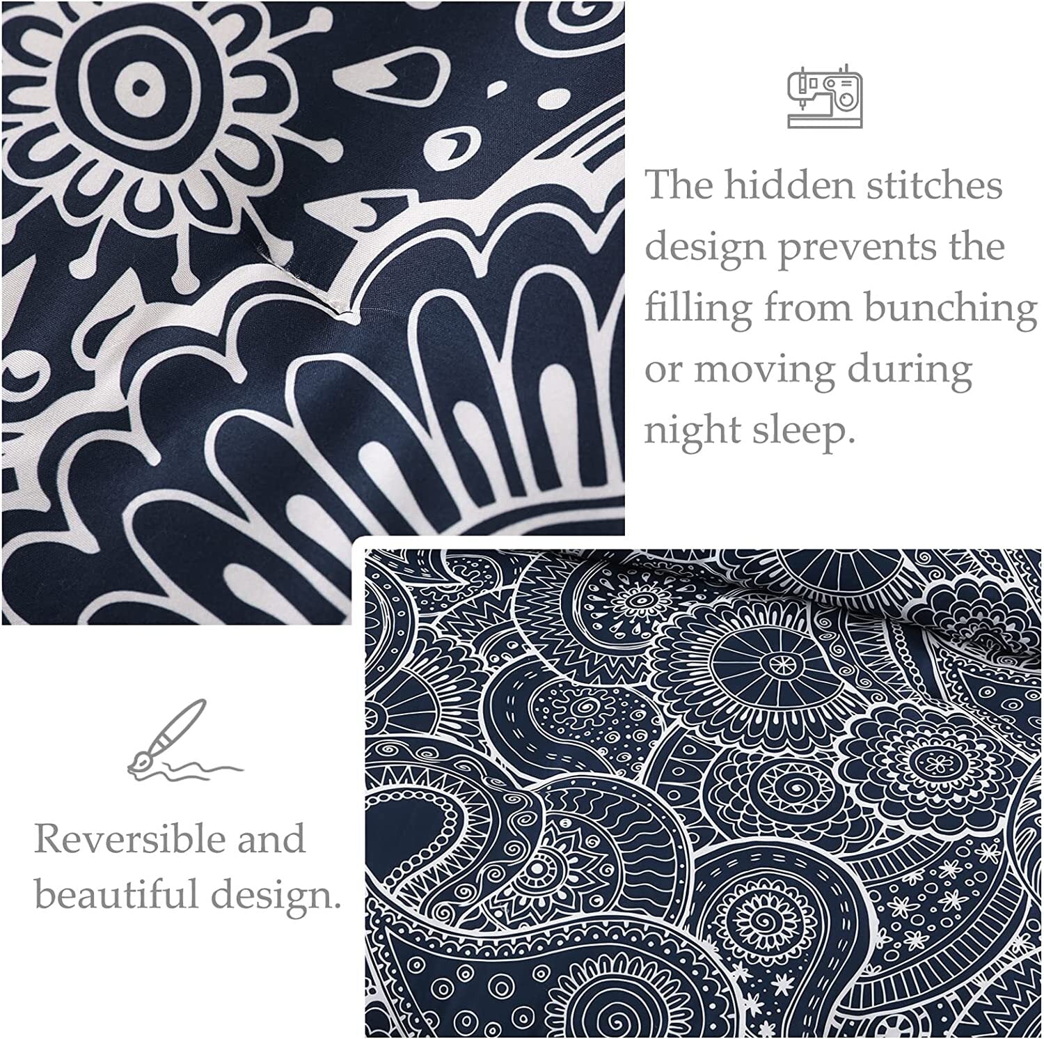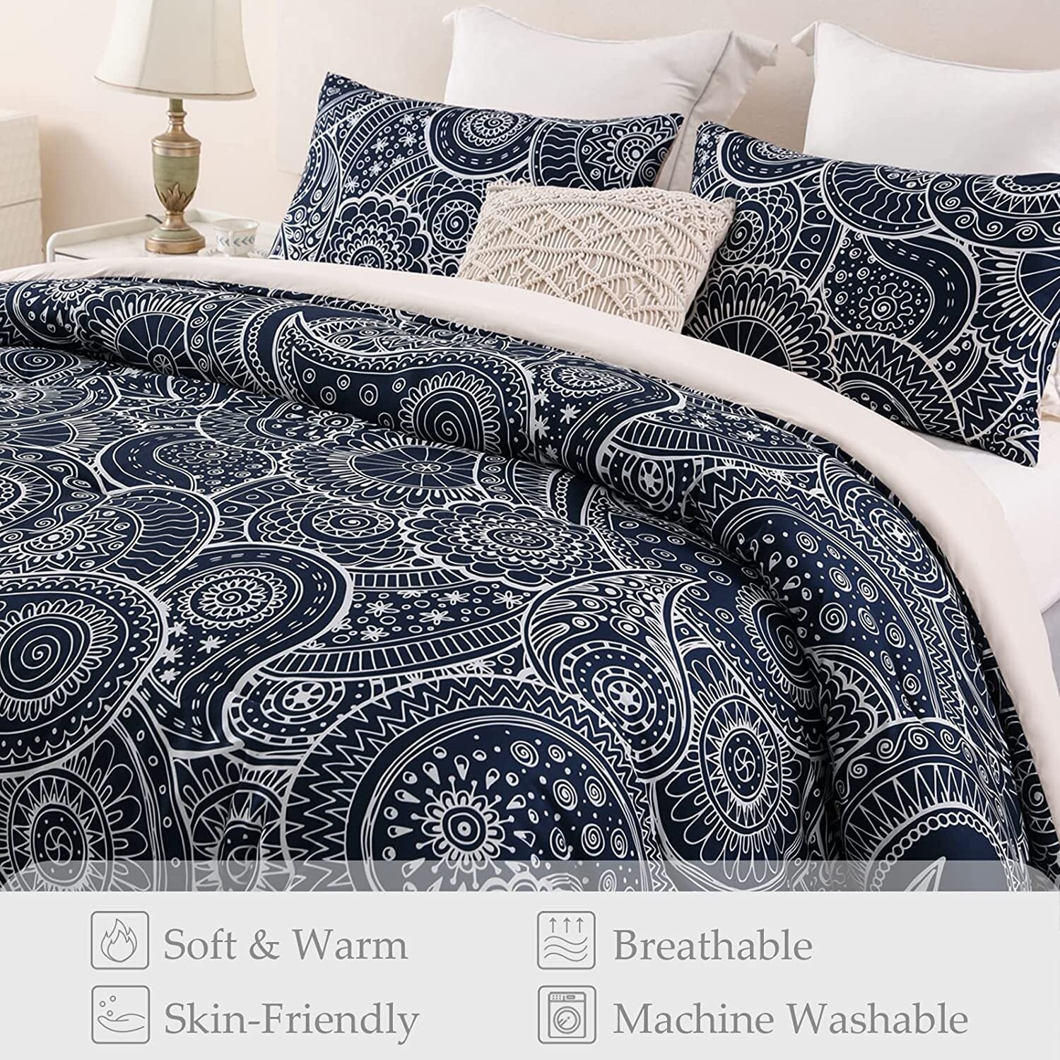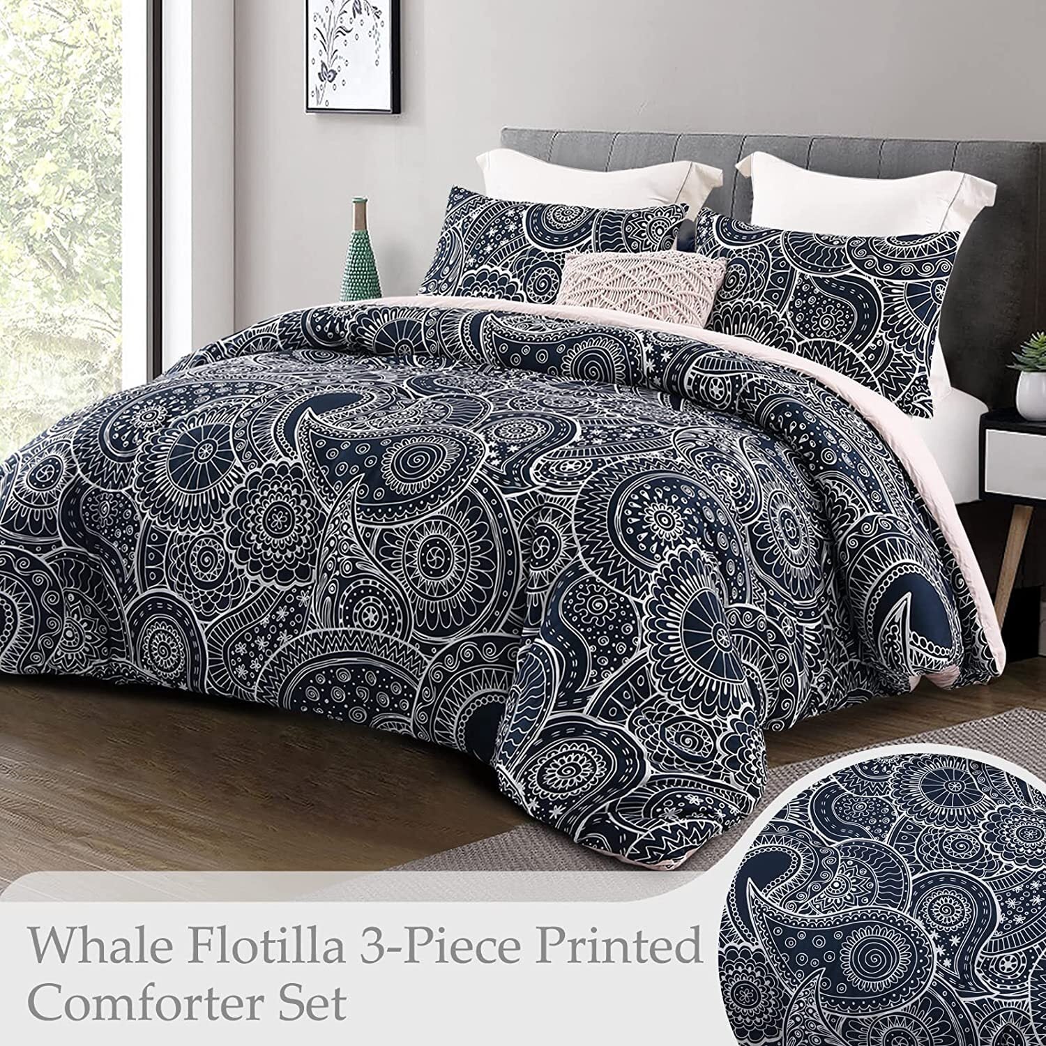 Whale Flotilla 3-Piece Queen Comforter Set, Soft Reversible Full Size Bedding Comforter Sets, Paisley Printed Down Alternative Comforter Duvet for All Seasons, Navy