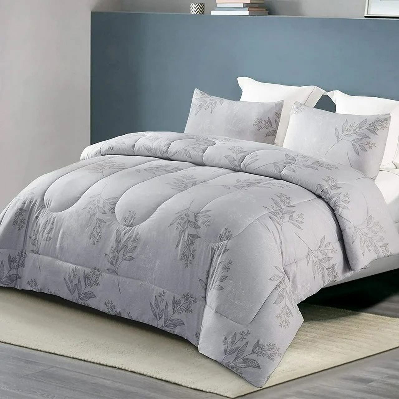 Whale Flotilla Queen Size Comforter Set with 2 Pillow Shams, Warm Down Alternative Comforter Printed with Floral Patterns, Soft and Comfortable Bedding Set for All Seasons, Grey