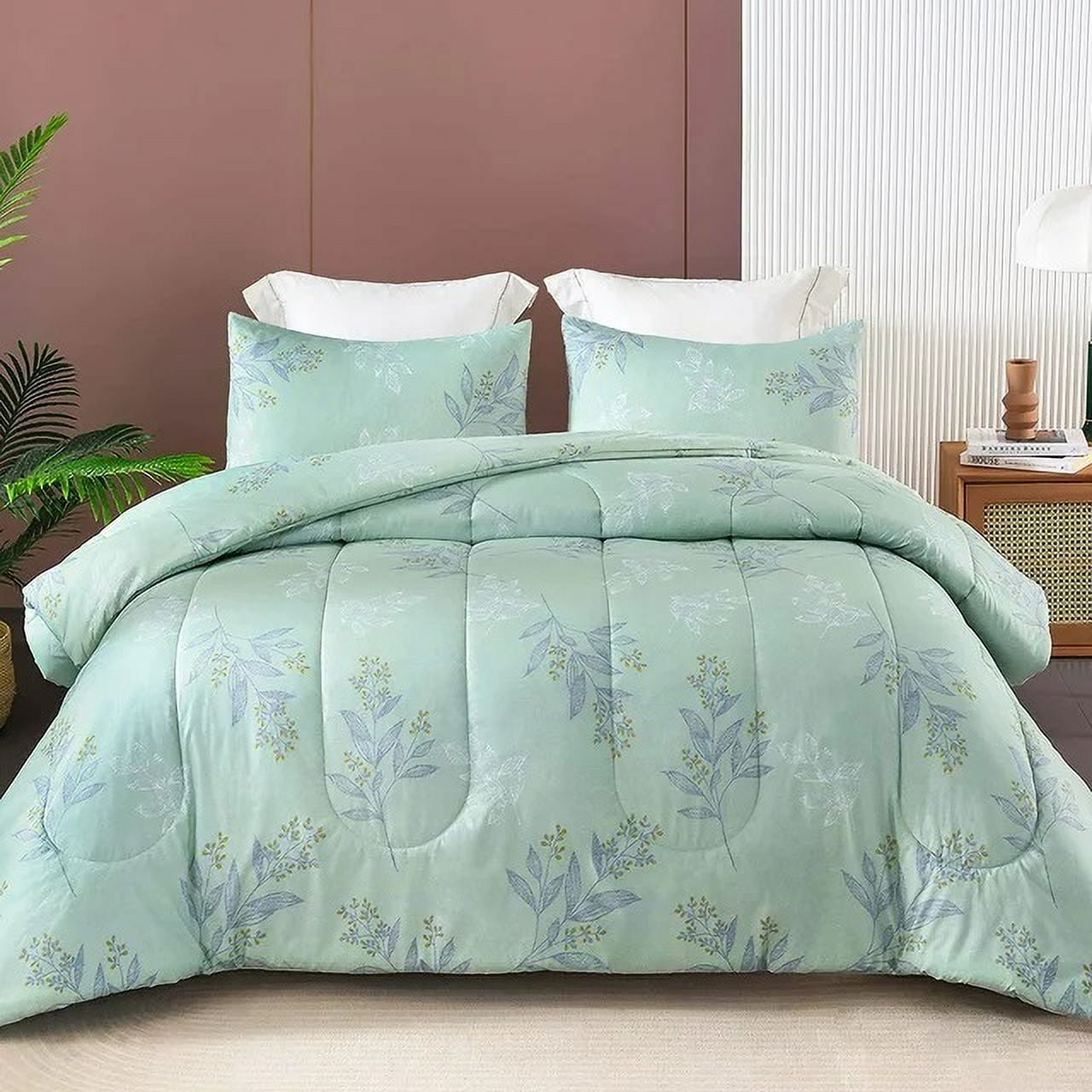 Whale Flotilla Twin Size Comforter Set with 1 Pillow Sham, Warm Down Alternative Comforter Printed with Floral Patterns, Soft and Comfortable Bedding Set for All Seasons, Green