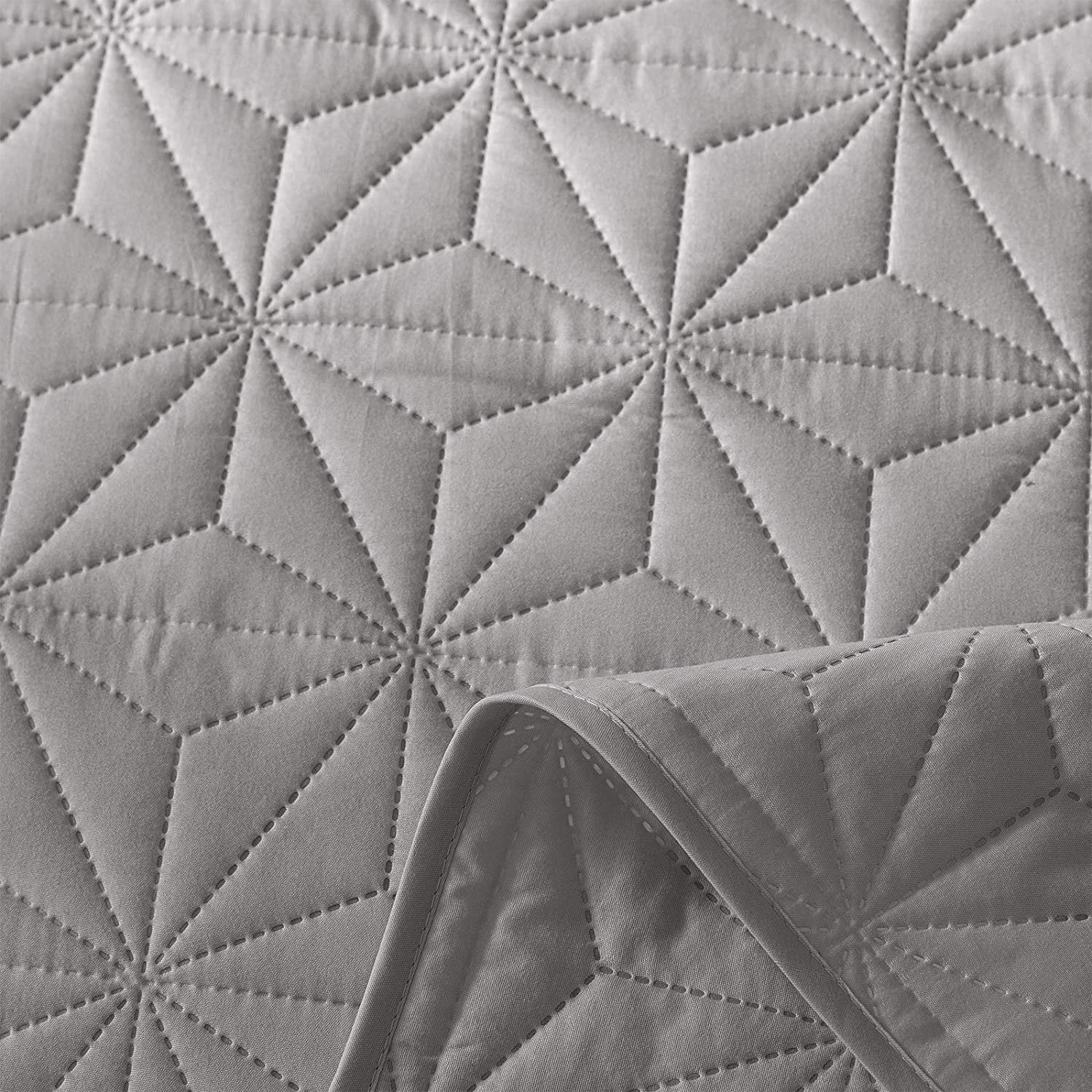 Whale Flotilla Microfiber California King (104x112 inches) Quilt Set Lightweight Quilted Bedspreads Coverlets Set with Stars Pattern, Lightgrey, 3 Piece (1 Quilt, 2 Shams)