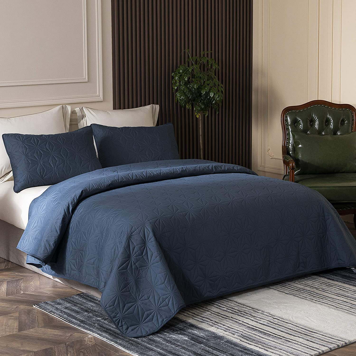 Whale Flotilla Microfiber California King (104x112 inches) Quilt Set Lightweight Quilted Bedspreads Coverlets Set with Stars Pattern, Navy, 3 Piece (1 Quilt, 2 Shams)