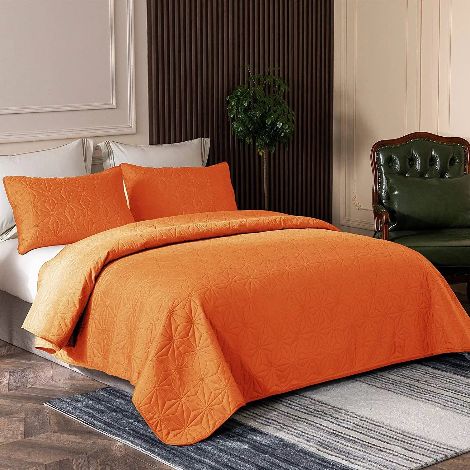 Whale Flotilla Microfiber California King (104x112 inches) Quilt Set Lightweight Quilted Bedspreads Coverlets Set with Stars Pattern, Orange, 3 Piece (1 Quilt, 2 Shams)