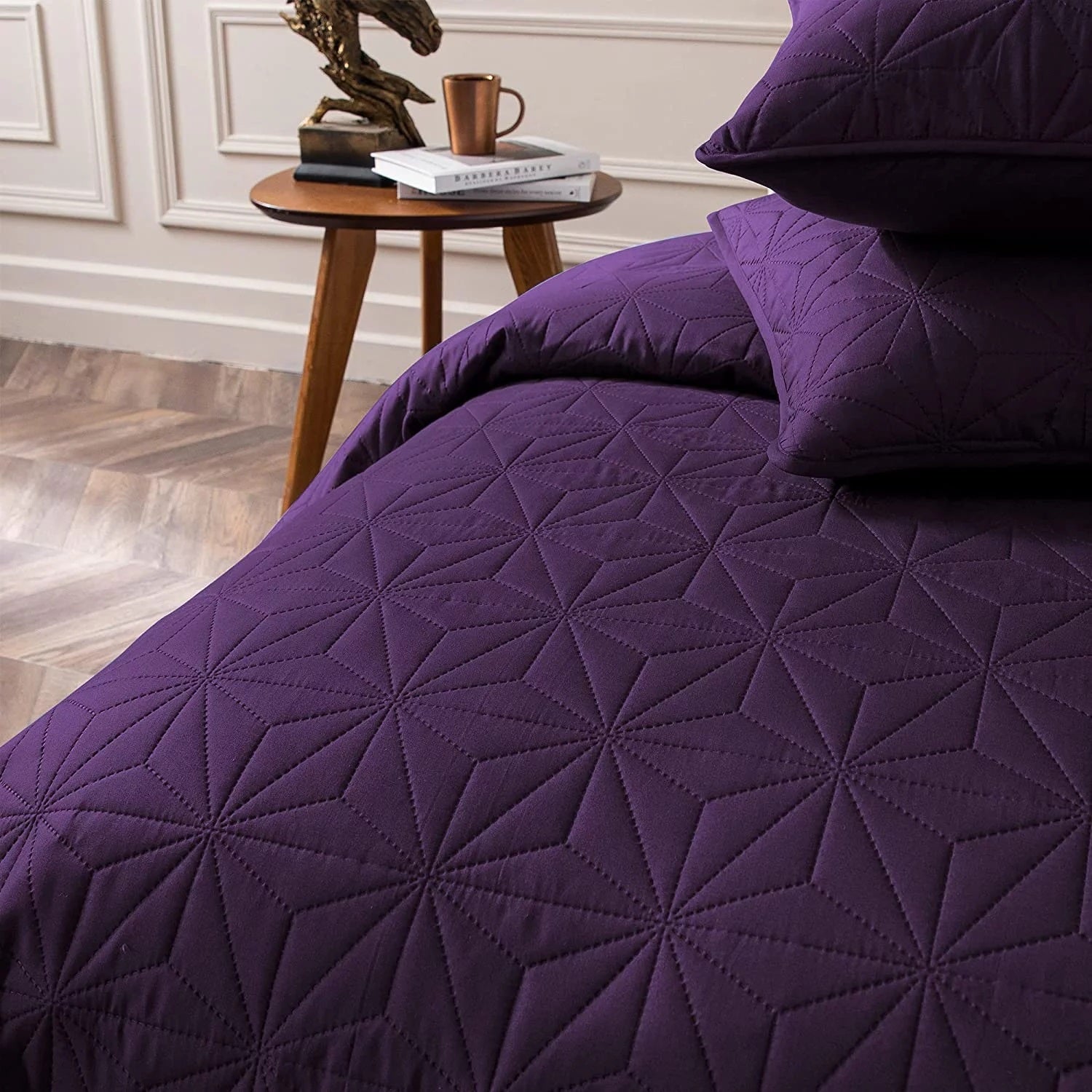 Whale Flotilla Microfiber California King (104x112 inches) Quilt Set Lightweight Quilted Bedspreads Coverlets Set with Stars Pattern, Purple, 3 Piece (1 Quilt, 2 Shams)