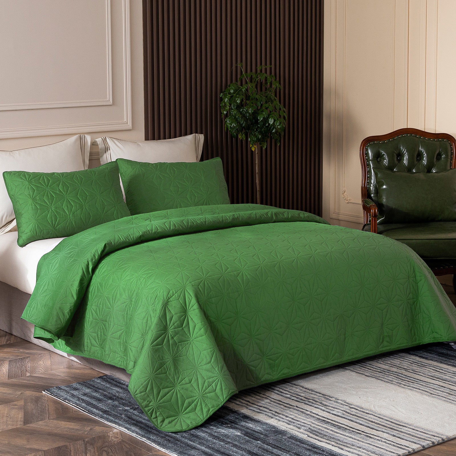Whale Flotilla 3-Piece Queen Size Quilt Set/Bedspreads/Coverlets for All Season, Star Pattern Bedding Set with 2 Pillow Shams, Soft and Lightweight, Green