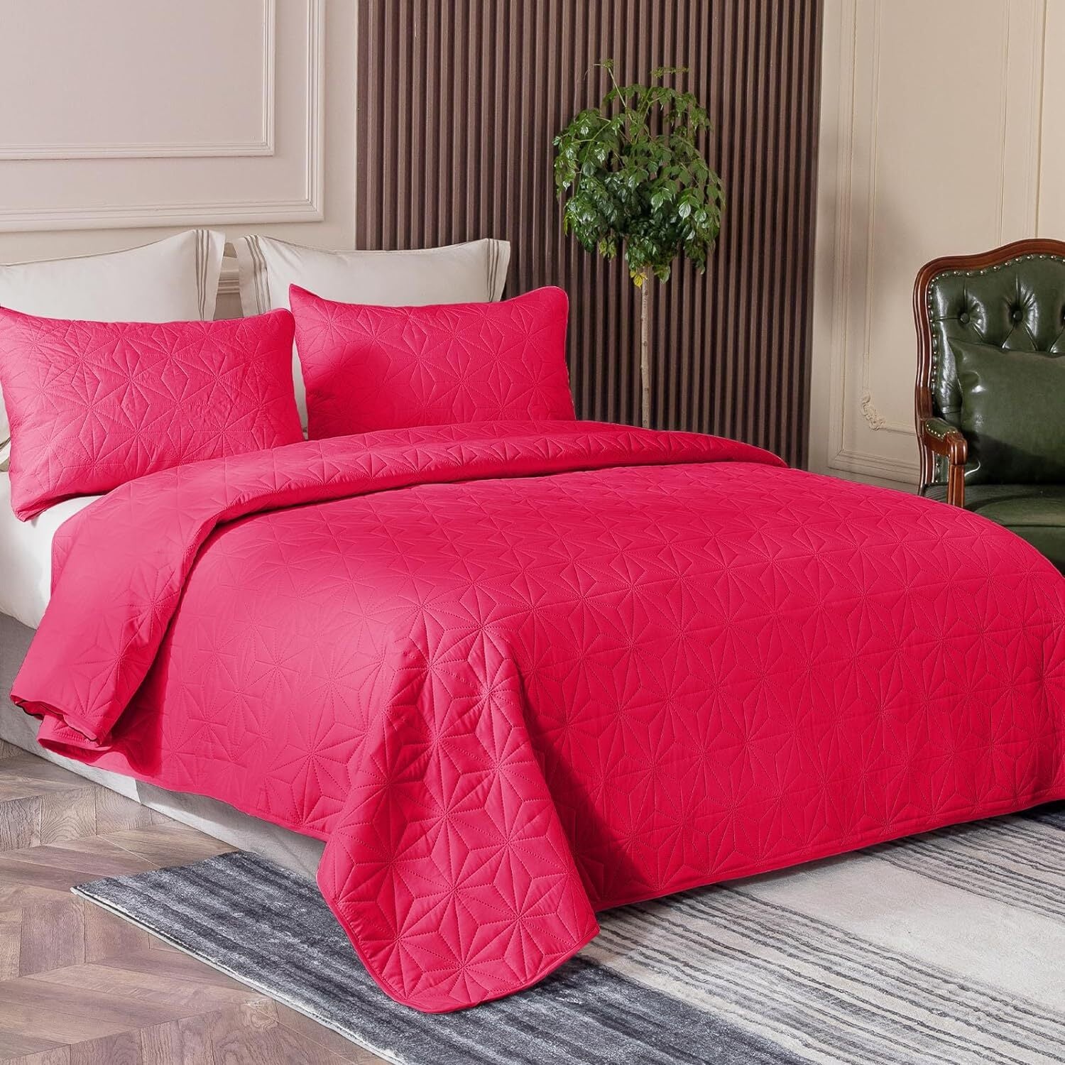 Whale Flotilla Microfiber Twin Size (68x88 inches) Quilt Set Lightweight Quilted Bedspreads Coverlets Set with Stars Pattern, Hot Pink?2 Piece (1 Quilt, 1 Sham)