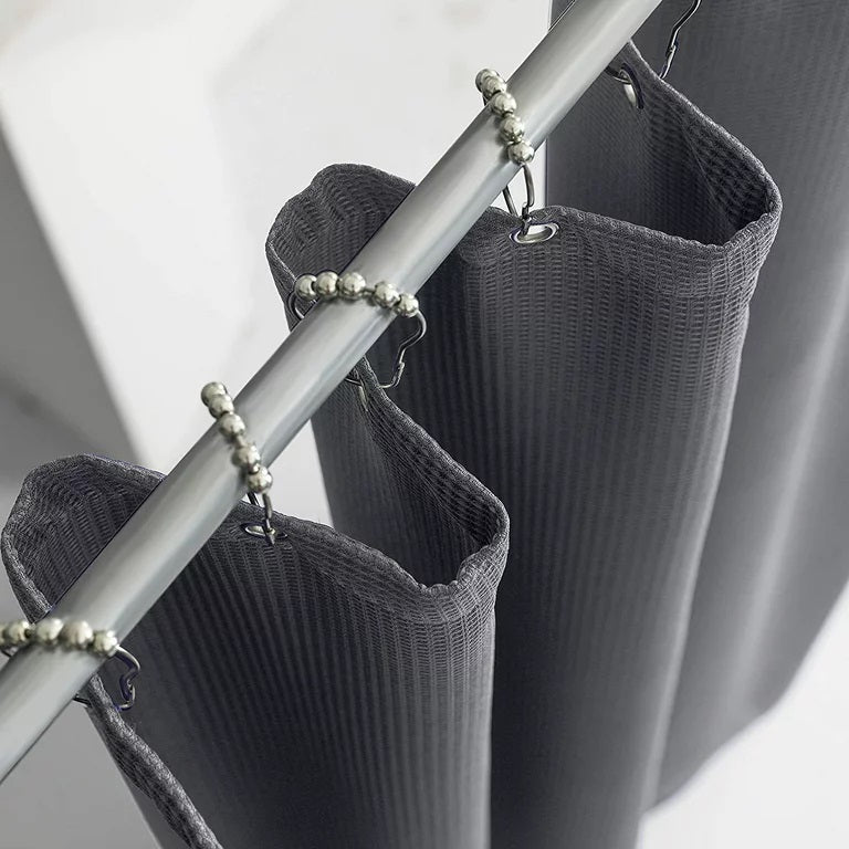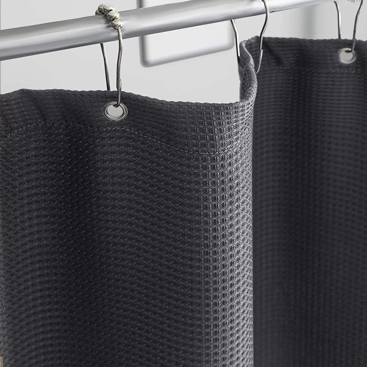 Whale Flotilla Luxury Hotel Waffle Weave Grey Shower Curtain Set,230GSM Heavy Duty Fabric Shower Curtain for Bathroom/Hotel with 12 Metal Roller Hooks, Waterproof and Machine Washable,72" W x 84" H