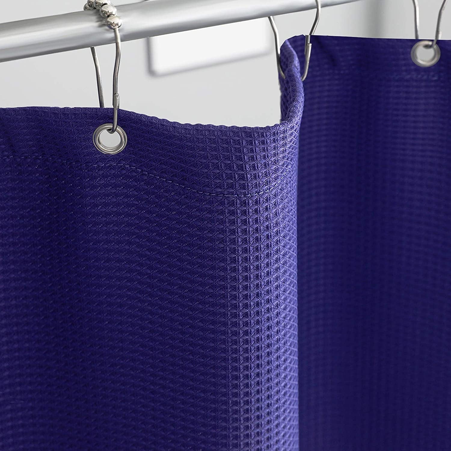 Whale Flotilla Luxury Hotel Waffle Weave Grey Shower Curtain Set,230GSM Heavy Duty Fabric Shower Curtain for Bathroom/Hotel with 12 Metal Roller Hooks, Waterproof and Machine Washable,72" W x 96" H