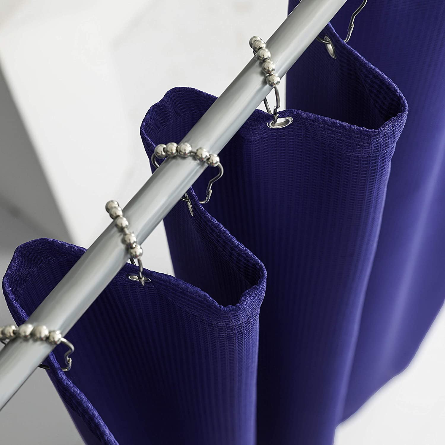 Premium Quality: 100% polyester fabric shower curtain with thick edging at the bottom. Waterproof, wrinkle resistance, durable. 230GSM (Gram Per Square Meter) heavy duty fabric helps keep shower curtain from billowing. About 1.2 pounds heavier than normal 90GSM fabric shower curtains. Shower Curtain Set: A shower curtain set provides 12 stainless steel hooks, you do not need to purchase additional. The 72Wx72H inch curtain fits most standard-sized bathtubs and showers. Experiences Luxury: Black shower curtain complemented by graceful waffle weave pattern, letting you enjoy luxurious hotel bath at home and easy to update bathroom decor theme. Durable: Waterproof and dries quickly, ensures that your solid black shower curtain remains fresh and clean. Advanced reactive printing and dyeing technology ensures that the shower curtain will not fade easily. Care Instruction: Easy to care for and safe to machine wash cold on gentle cycle, tumble dry low.Contact us If you have any questions about our products, we will definitely solve it for you.Share