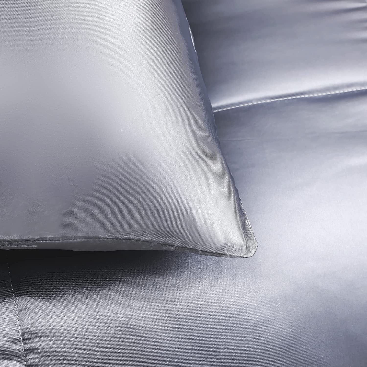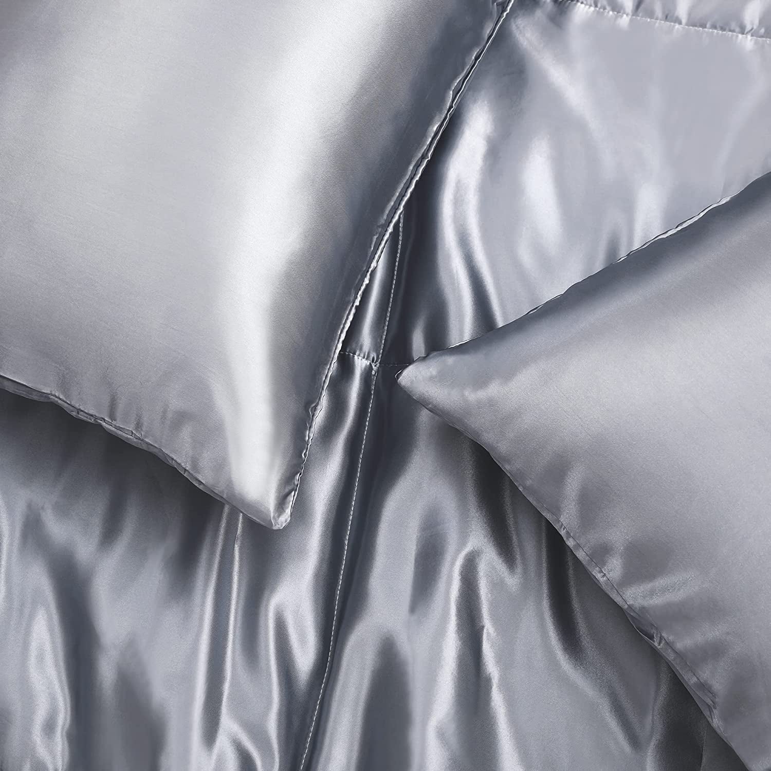 Package include - The king comforter set includes one comforter (90"X102"), and two king satin pillowcases (20"x36"). There is always one you would like or goes well with comforter. Soft and Breathable - Satin duvet set is smooth, soft, breathable and sensitive skin-friendly. The silk-like fabric full of the extraordinary texture, which is ultra soft against your skin. This comfy and breathable satin duvet will make you refreshed when you wake up. Unique Design: This ultra comfortable bedding set is double-side design. One side of the duvet is pure satin fabric with an elegant style box stitching that prevent the fill from shifting, reflecting charming pearly lustre in the light. The other side is made of brushed fabric, which makes the duvet more breathable and durable than cotton fabric. You could choose either one side to cover as you like. MULTI-PURPOSE USAGE - This satin comforters is lightweight but could reach the high demand of feeling warm in winter and cool in summer so that it can be used all the year round. This comforter set can decorate your room perfectly and create a luxurious style. It is also a sweet gift for your families and friends, offering them an ample and relaxing sleeping with our super soft and lightweight comforters.Share