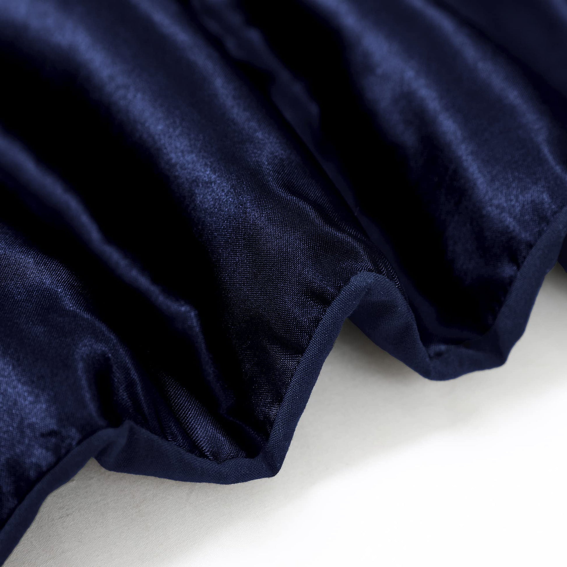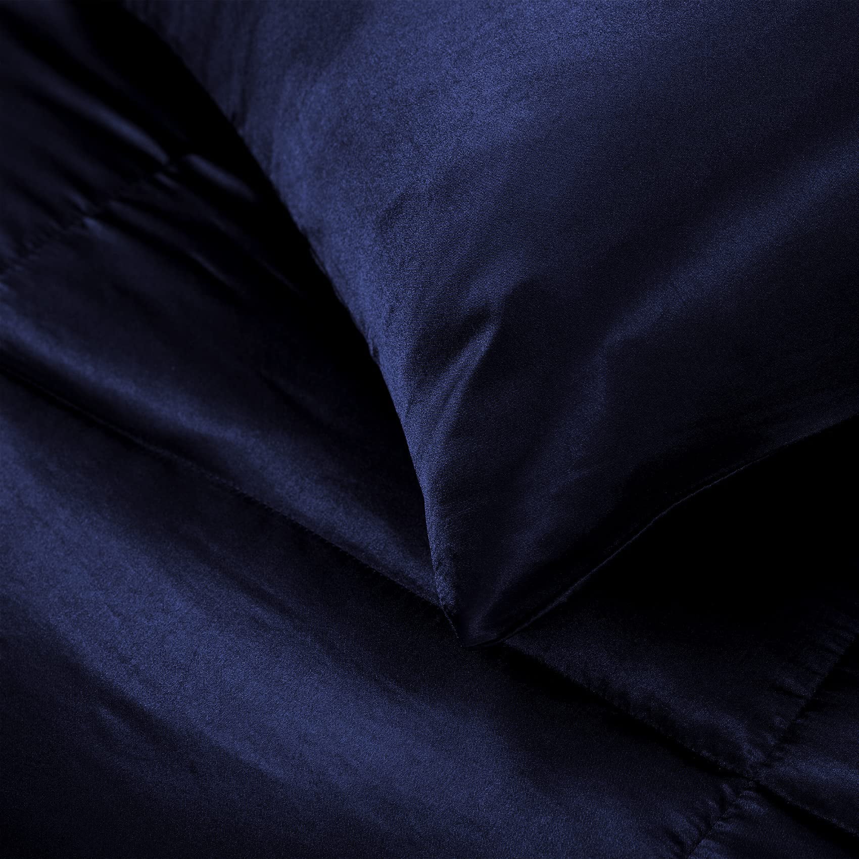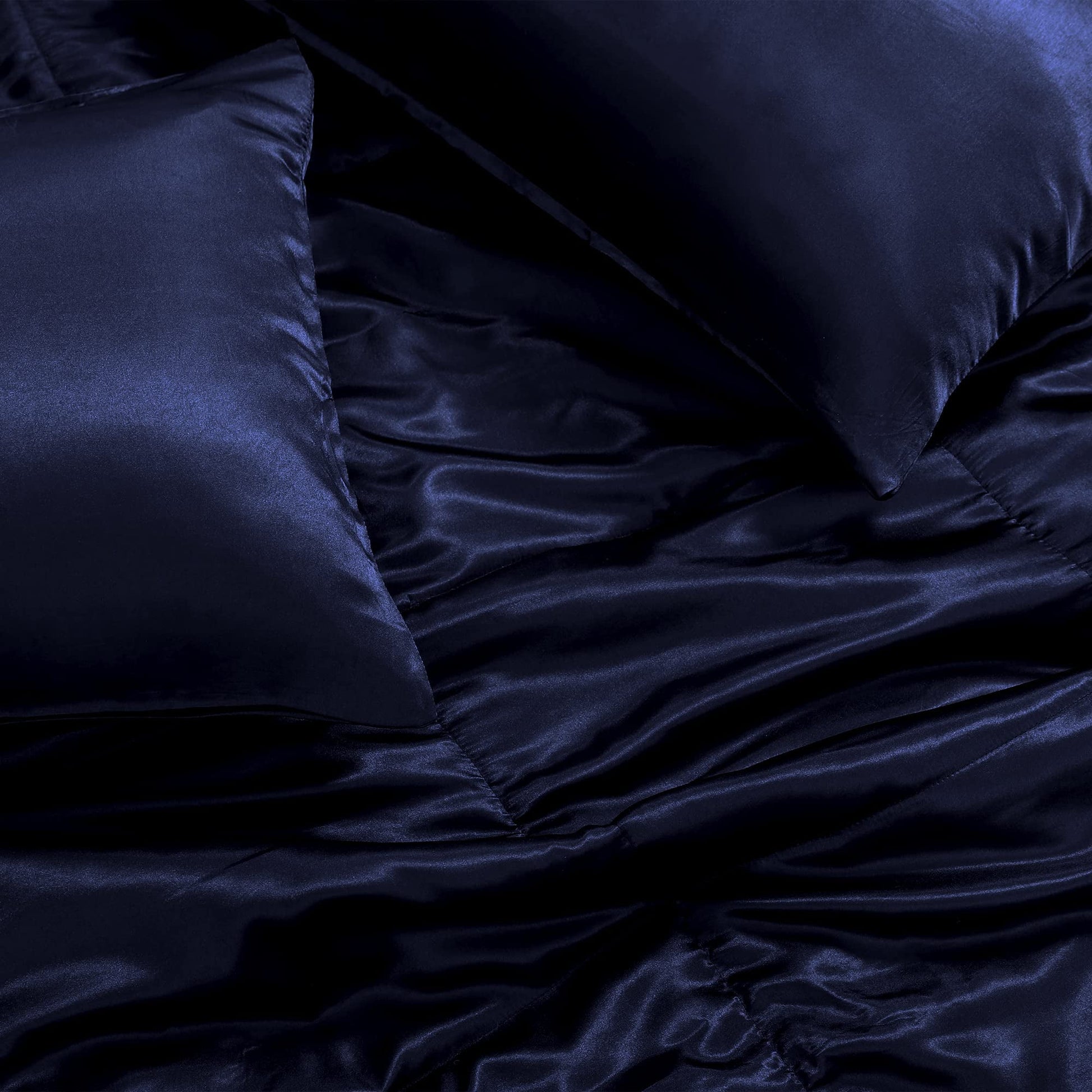 Package include - The king comforter set includes one comforter (90"X102"), and two king satin pillowcases (20"x36"). There is always one you would like or goes well with comforter. Soft and Breathable - Satin duvet set is smooth, soft, breathable and sensitive skin-friendly. The silk-like fabric full of the extraordinary texture, which is ultra soft against your skin. This comfy and breathable satin duvet will make you refreshed when you wake up. Unique Design: This ultra comfortable bedding set is double-side design. One side of the duvet is pure satin fabric with an elegant style box stitching that prevent the fill from shifting, reflecting charming pearly lustre in the light. The other side is made of brushed fabric, which makes the duvet more breathable and durable than cotton fabric. You could choose either one side to cover as you like. MULTI-PURPOSE USAGE - This satin comforters is lightweight but could reach the high demand of feeling warm in winter and cool in summer so that it can be used all the year round. This comforter set can decorate your room perfectly and create a luxurious style. It is also a sweet gift for your families and friends, offering them an ample and relaxing sleeping with our super soft and lightweight comforters.Share