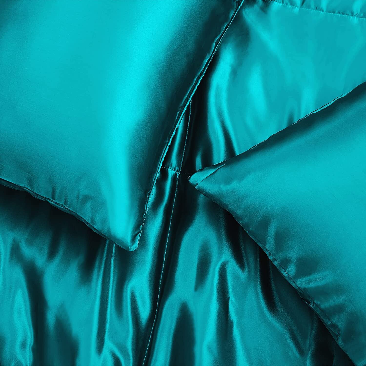 Package include - The queen comforter set includes one comforter (88"X88"), and two standard satin pillowcases (20"x26"). There is always one you would like or goes well with comforter. Soft and Breathable - Satin duvet set is smooth, soft, breathable and sensitive skin-friendly. The silk-like fabric full of the extraordinary texture, which is ultra soft against your skin. This comfy and breathable satin duvet will make you refreshed when you wake up. Unique Design: This ultra comfortable bedding set is double-side design. One side of the duvet is pure satin fabric with an elegant style box stitching that prevent the fill from shifting, reflecting charming pearly lustre in the light. The other side is made of brushed fabric, which makes the duvet more breathable and durable than cotton fabric. You could choose either one side to cover as you like. MULTI-PURPOSE USAGE - This satin comforters is lightweight but could reach the high demand of feeling warm in winter and cool in summer so that it can be used all the year round. This comforter set can decorate your room perfectly and create a luxurious style. It is also a sweet gift for your families and friends, offering them an ample and relaxing sleeping with our super soft and lightweight comforters.Share