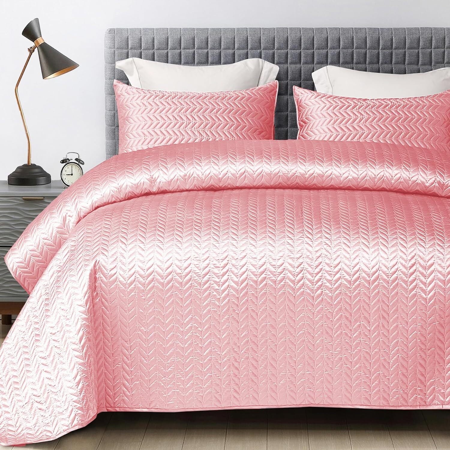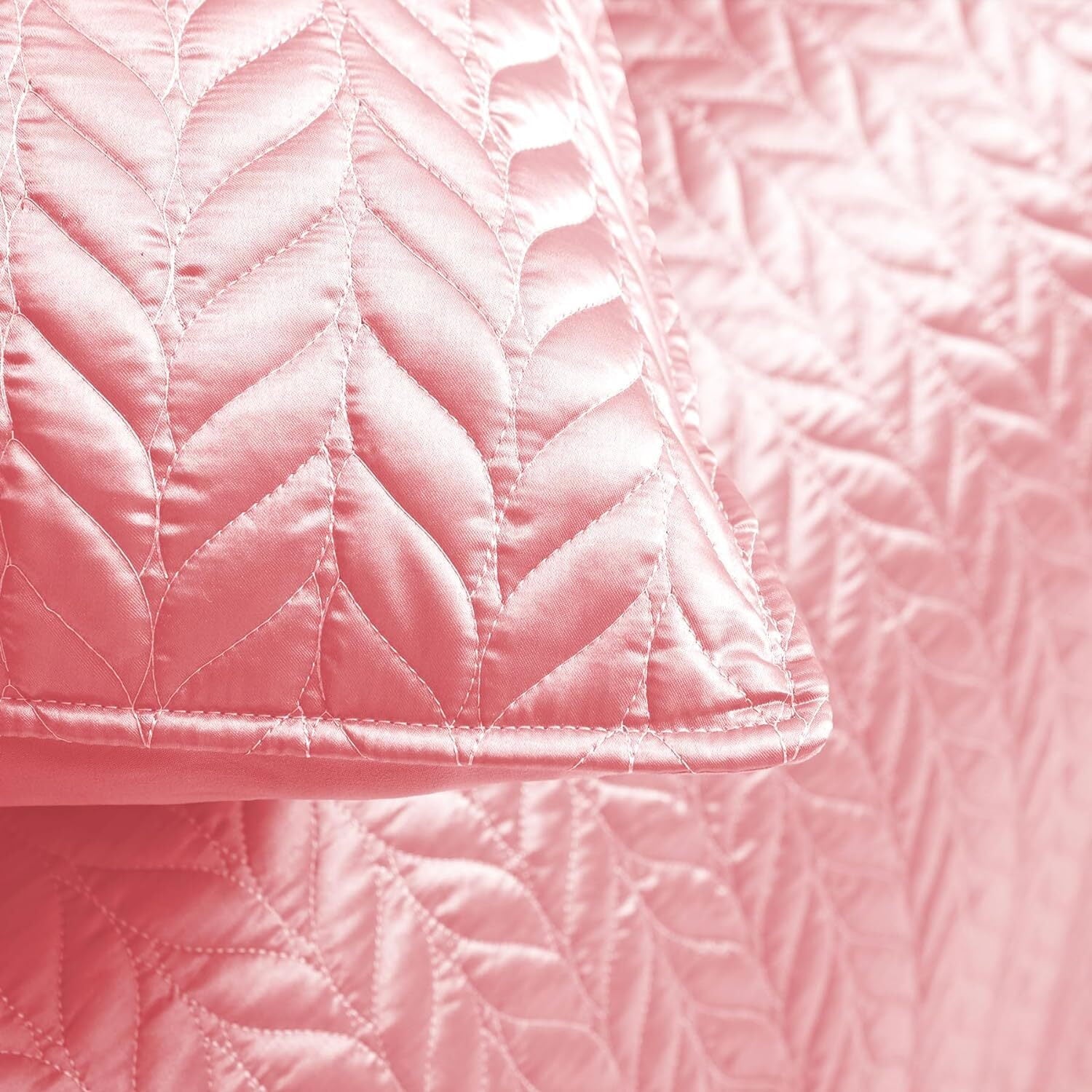 Whale Flotilla 3-Piece Luxury Satin Quilt Set King Size, Reversible Lightweight Coverlet Bedspreads Bedding Set with Pillow Shams,94x104 Inches, Pink
