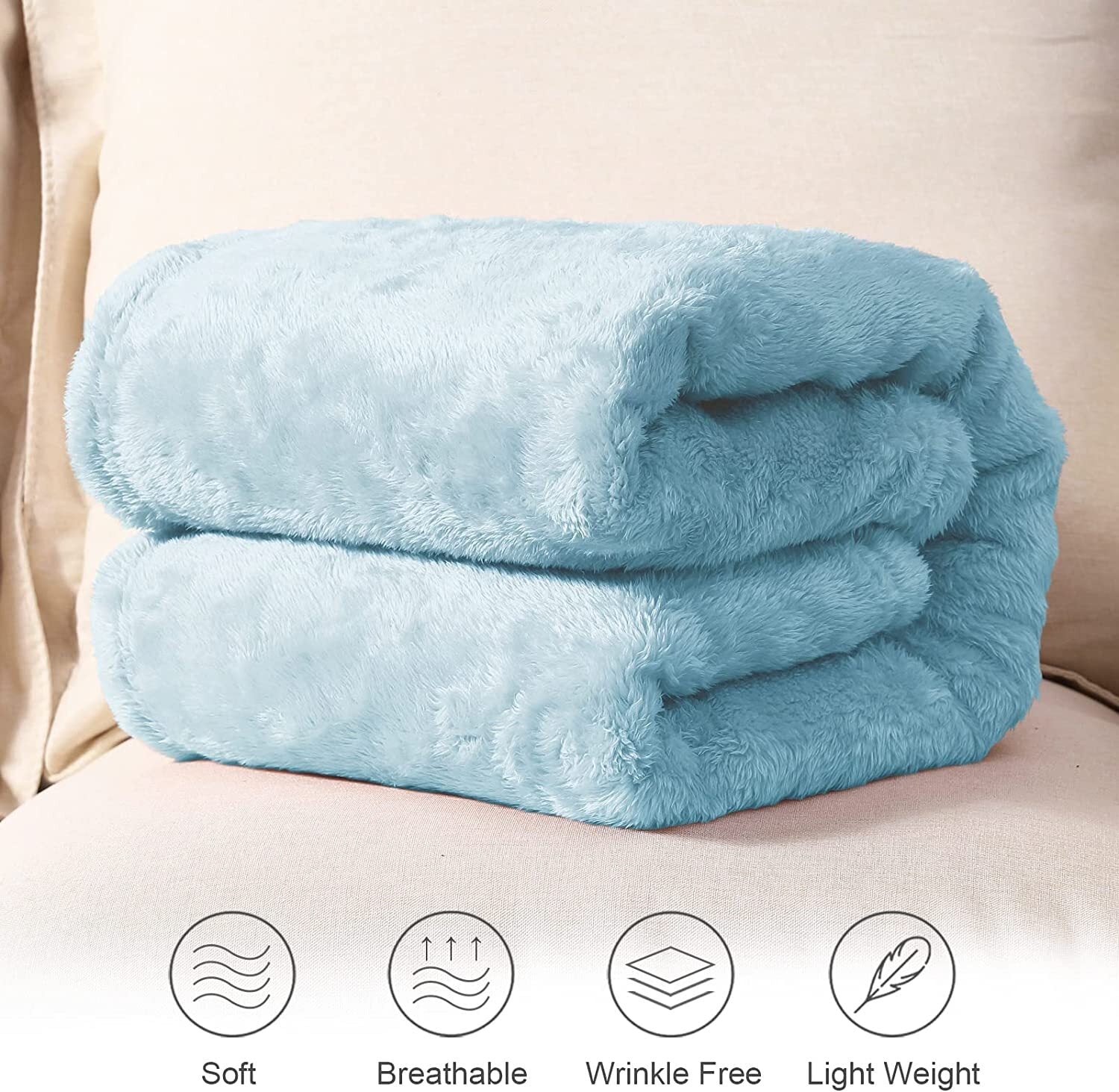 Whale Flotilla Fuzzy Faux Fur Throw Blanket for Couch, Soft Warm Fluffy Fleece Blanket for Bed/Sofa/Camping/Travel, Extra Large and Lightweight, 50x70 Inch, Light Blue