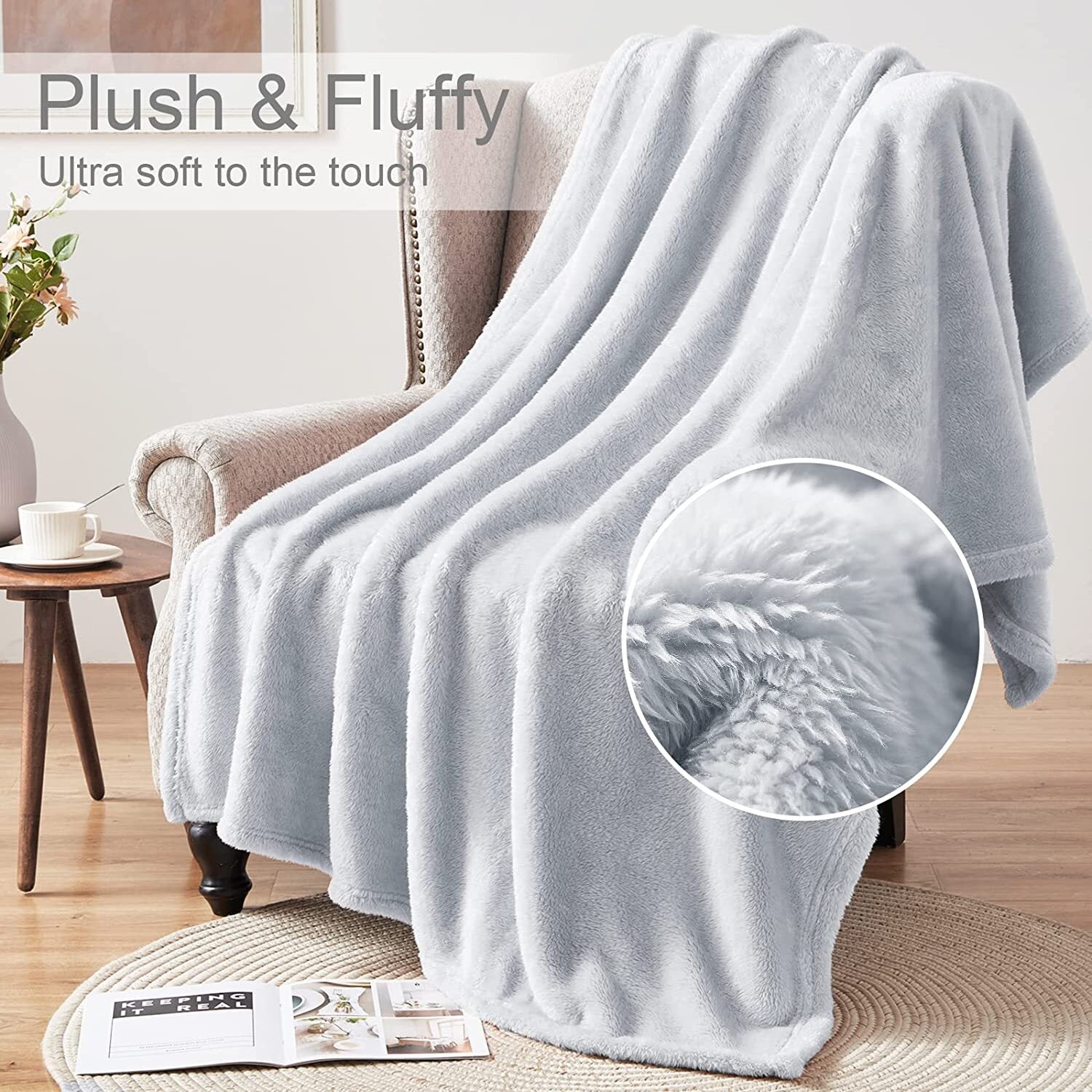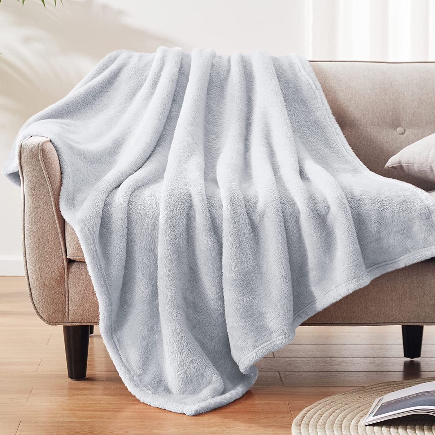 Whale Flotilla Fuzzy Faux Fur Throw Blanket for Couch, Soft Warm Fluffy Fleece Blanket for Bed/Sofa/Camping/Travel, Extra Large and Lightweight, 50x70 Inch, Silver Grey