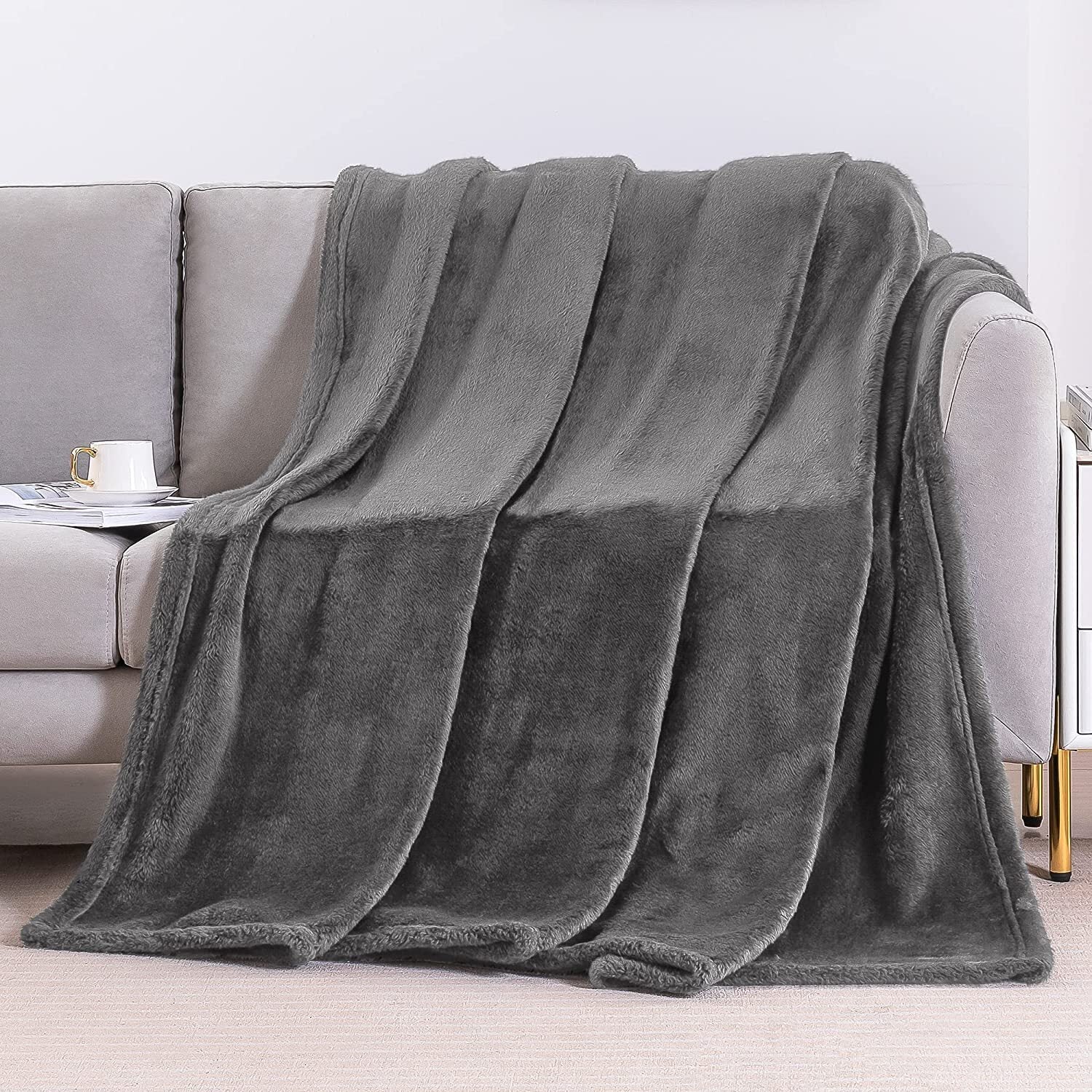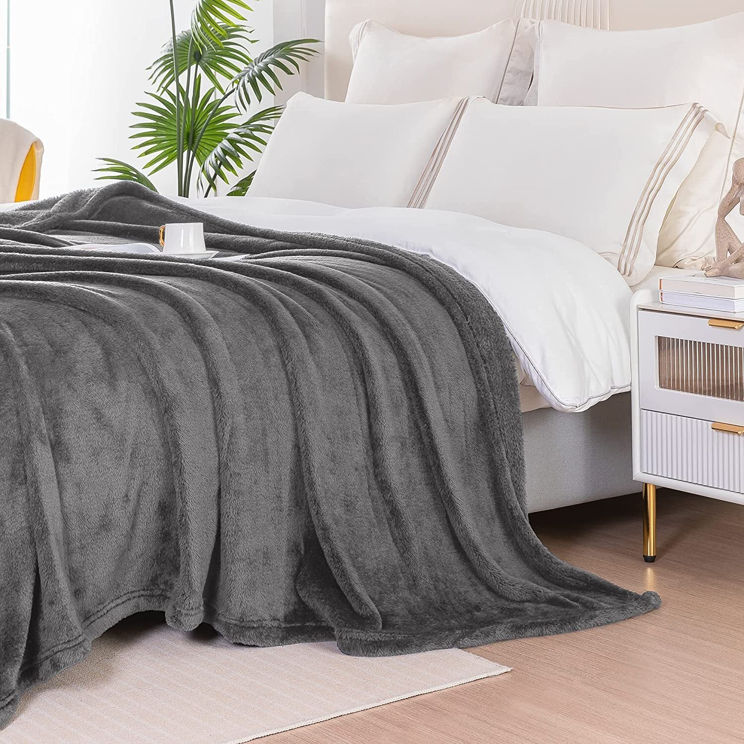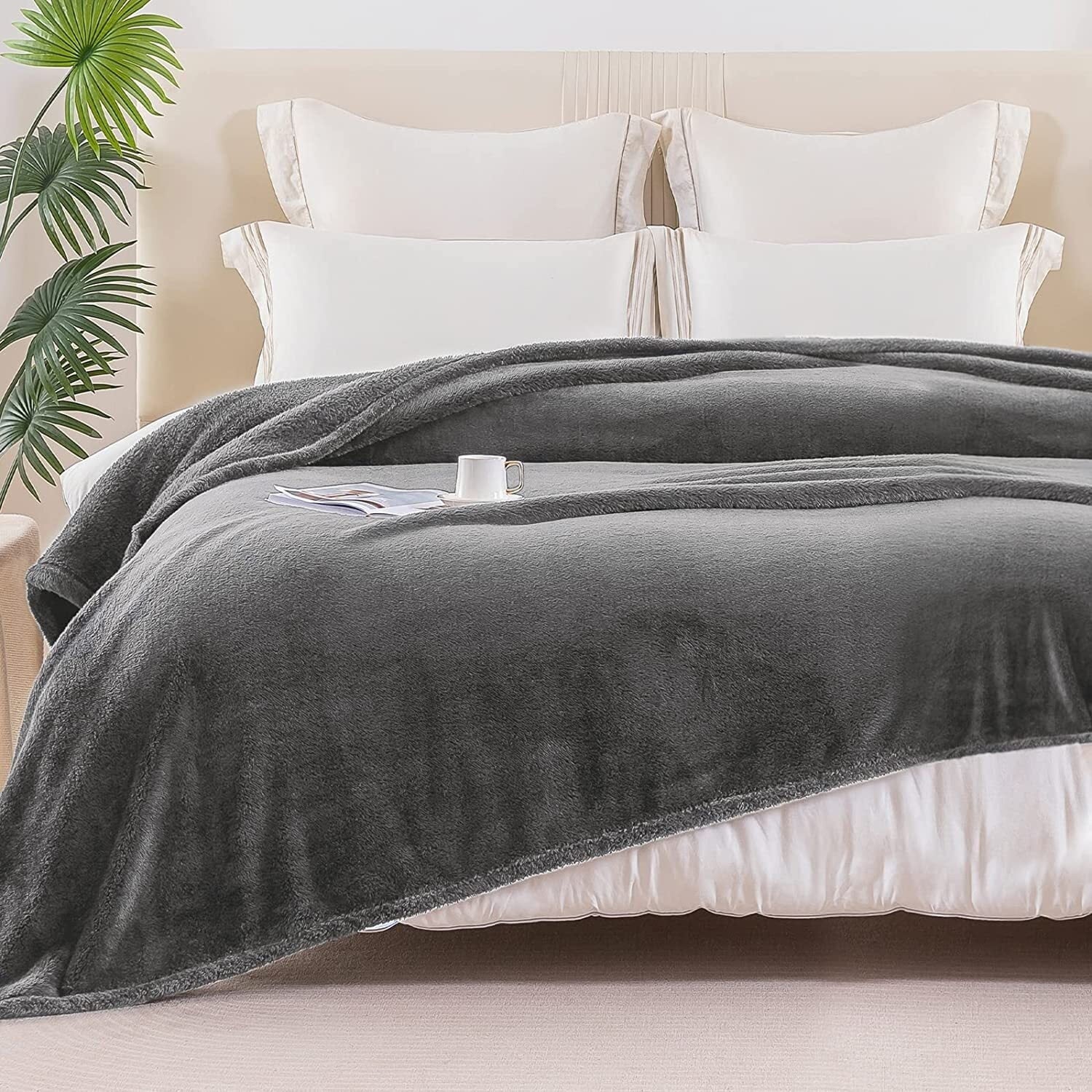 Whale Flotilla Fuzzy Faux Fur Blanket King Size, Soft Warm Fluffy Fleece Blanket for Bed, Cozy and Lightweight Bedspread for All Seasons,90x104 Inch, Grey