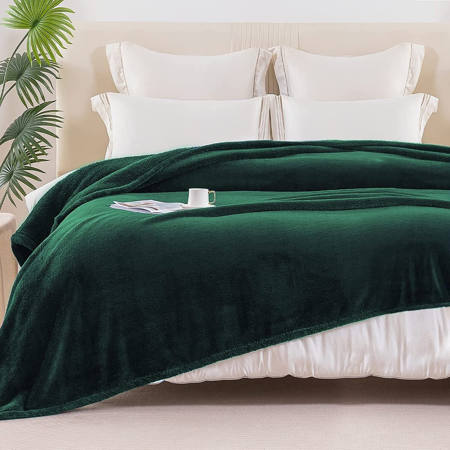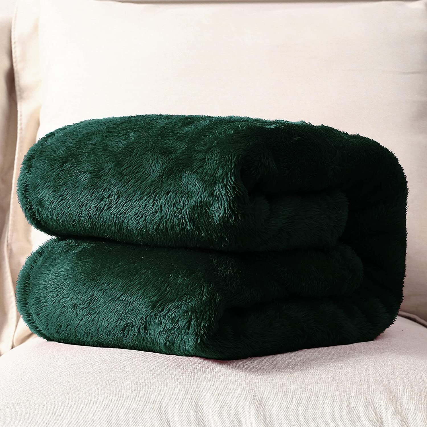 Whale Flotilla Fuzzy Faux Fur Blanket King Size, Soft Warm Fluffy Fleece Blanket for Bed, Cozy and Lightweight Bedspread for All Seasons,90x66 Inch, Deep Green
