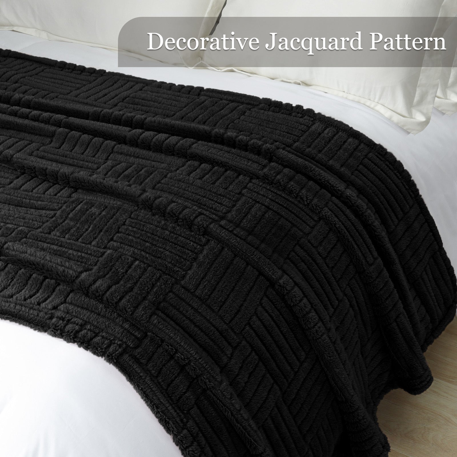 Whale Flotilla Fluffy Fleece Throw Blanket for Couch, Bed, Sofa, Fuzzy Soft Cozy Exquisite Blankets with Decorative Jacquard Pattern for All Season, Warm but Lightweight, 50x60 Inch, Black