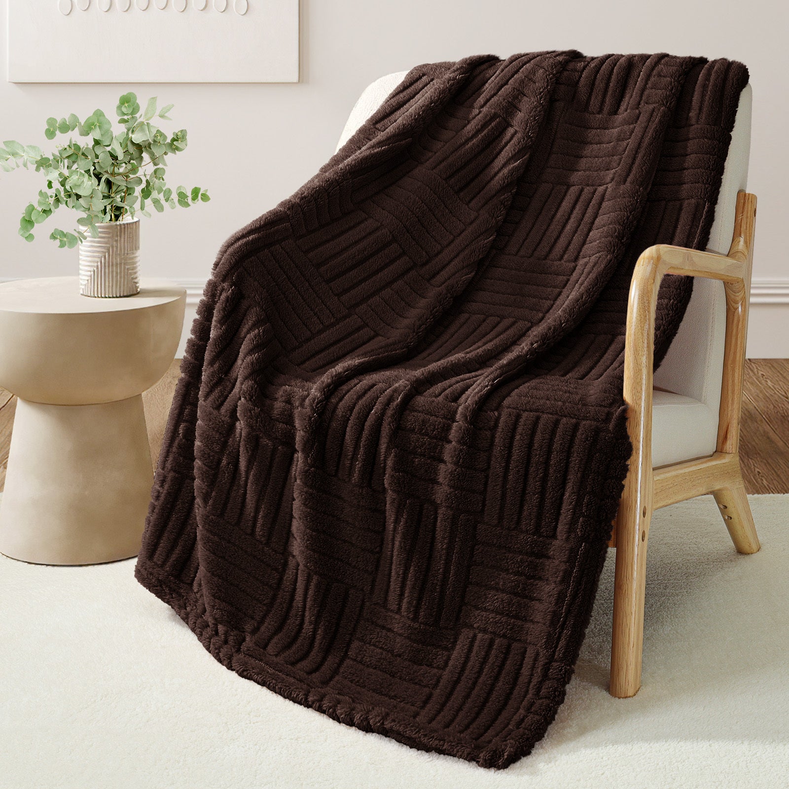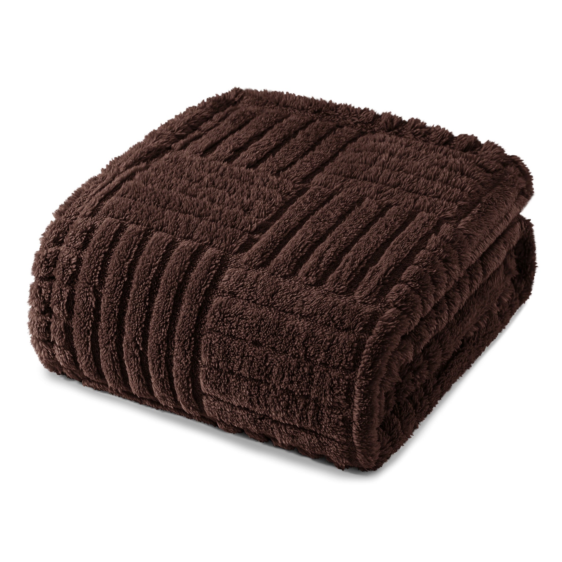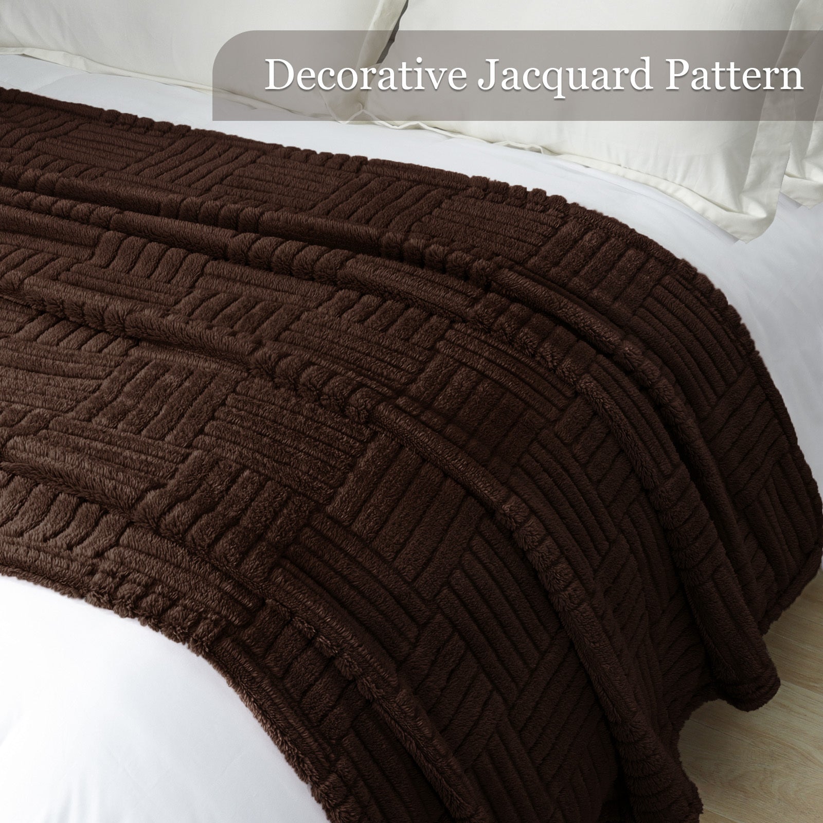Whale Flotilla Fluffy Fleece Throw Blanket for Couch, Bed, Sofa, Fuzzy Soft Cozy Exquisite Blankets with Decorative Jacquard Pattern for All Season, Warm but Lightweight, 50x60 Inch, Coffee