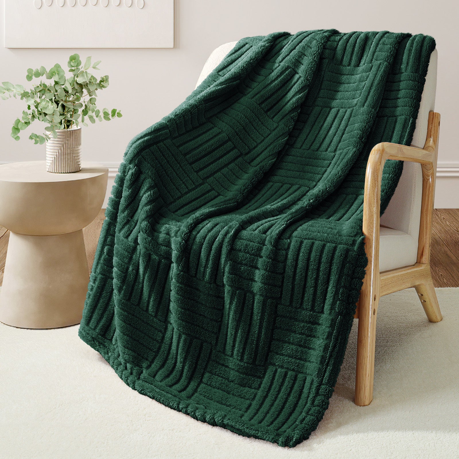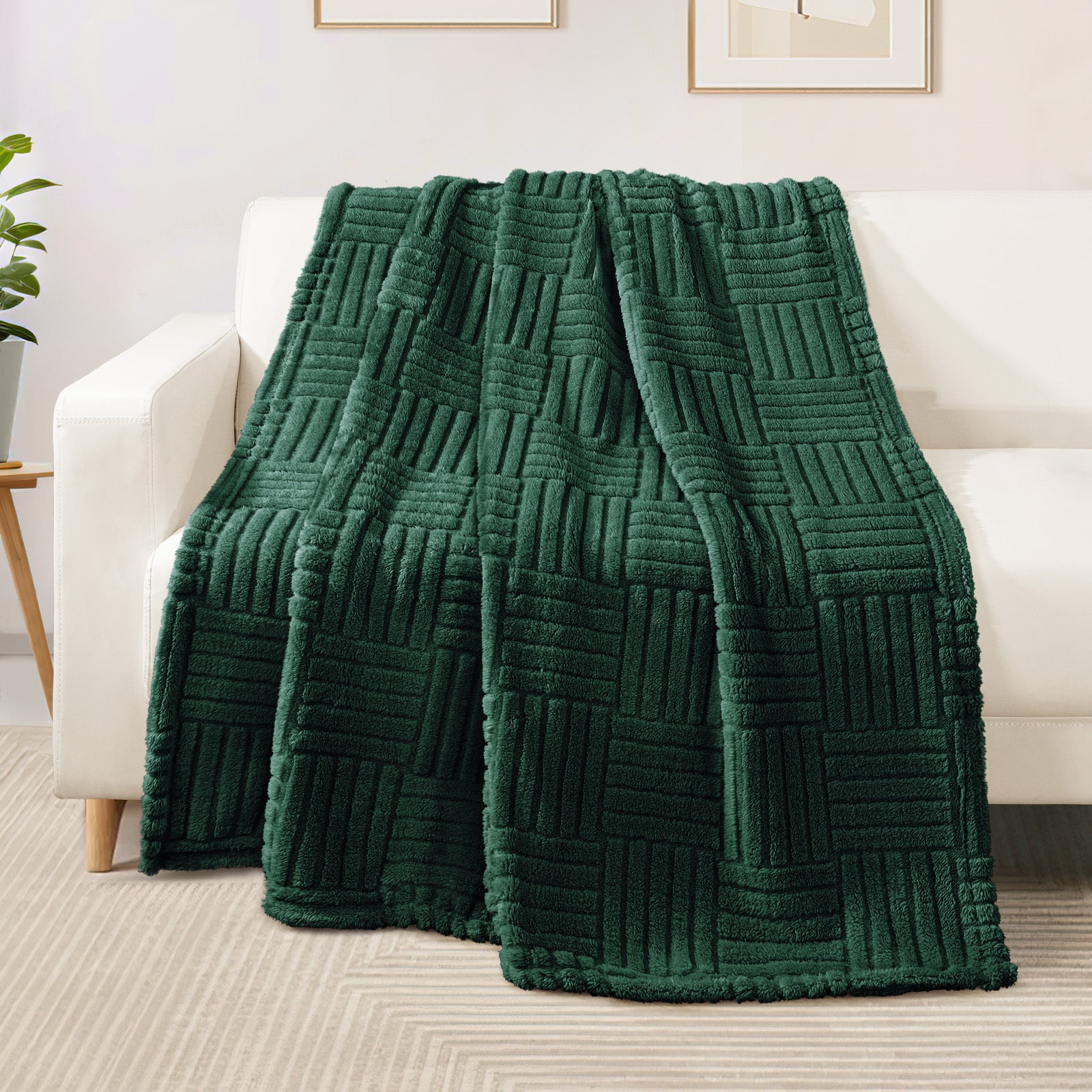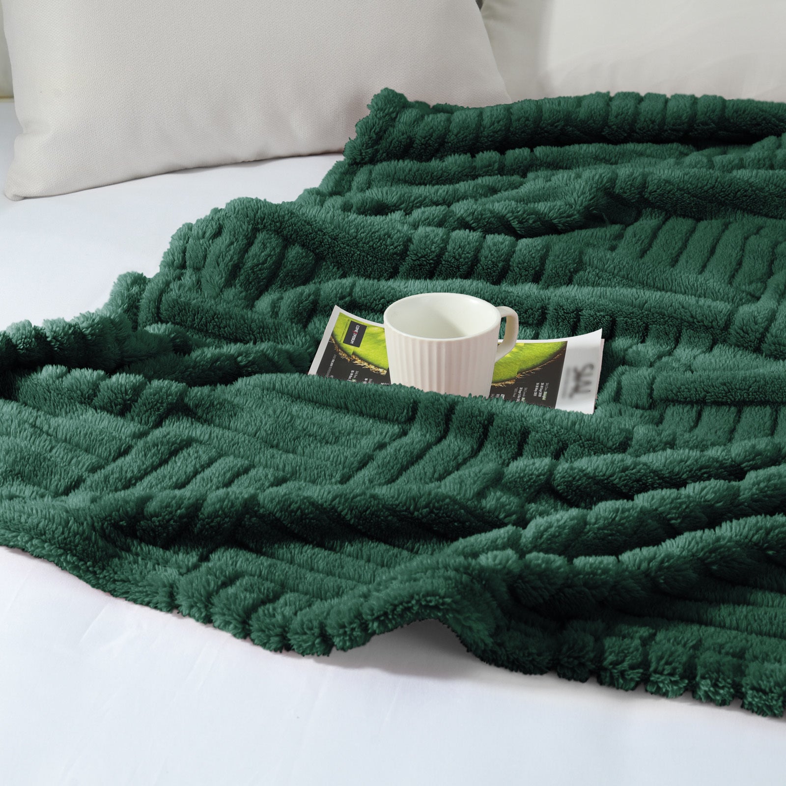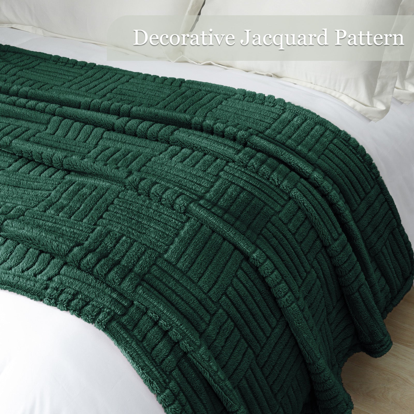 Whale Flotilla Fluffy Fleece Throw Blanket for Couch, Bed, Sofa, Fuzzy Soft Cozy Exquisite Blankets with Decorative Jacquard Pattern for All Season, Warm but Lightweight, 50x60 Inch, Emerald Green