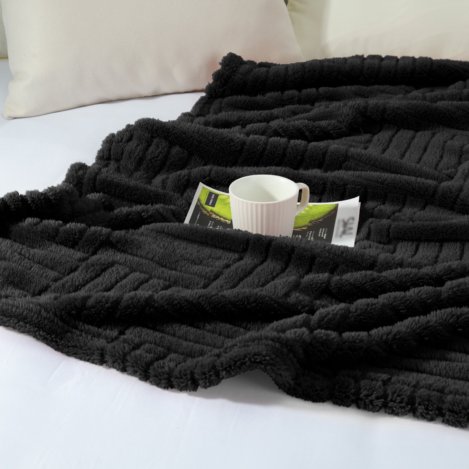 Whale Flotilla Fluffy Fleece Twin Size Blanket for Bed, Fuzzy Soft Cozy Exquisite Blankets with Decorative Jacquard Pattern for All Season, Warm but Lightweight, 60x80 Inch, Black
