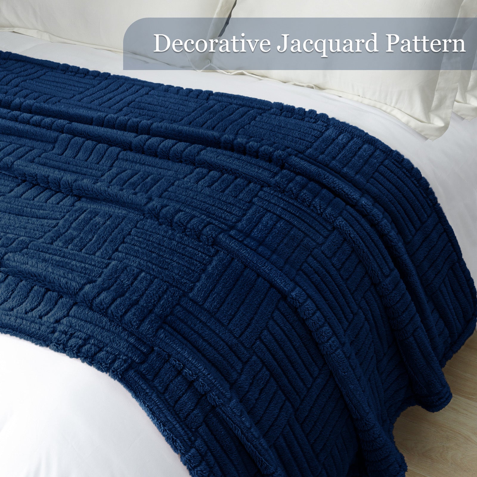 Whale Flotilla Fluffy Fleece Twin Size Blanket for Bed, Fuzzy Soft Cozy Exquisite Blankets with Decorative Jacquard Pattern for All Season, Warm but Lightweight, 60x80 Inch, Navy Blue