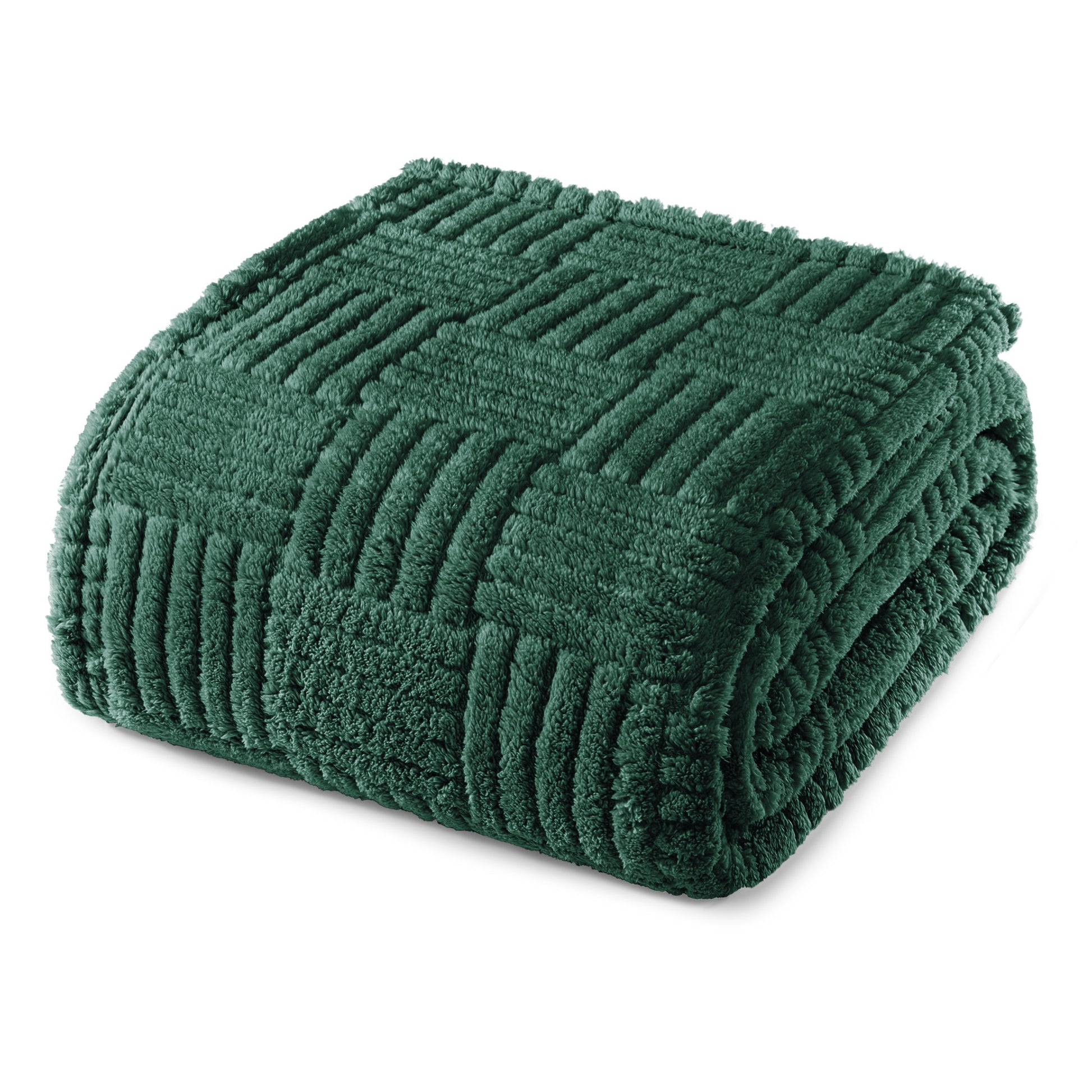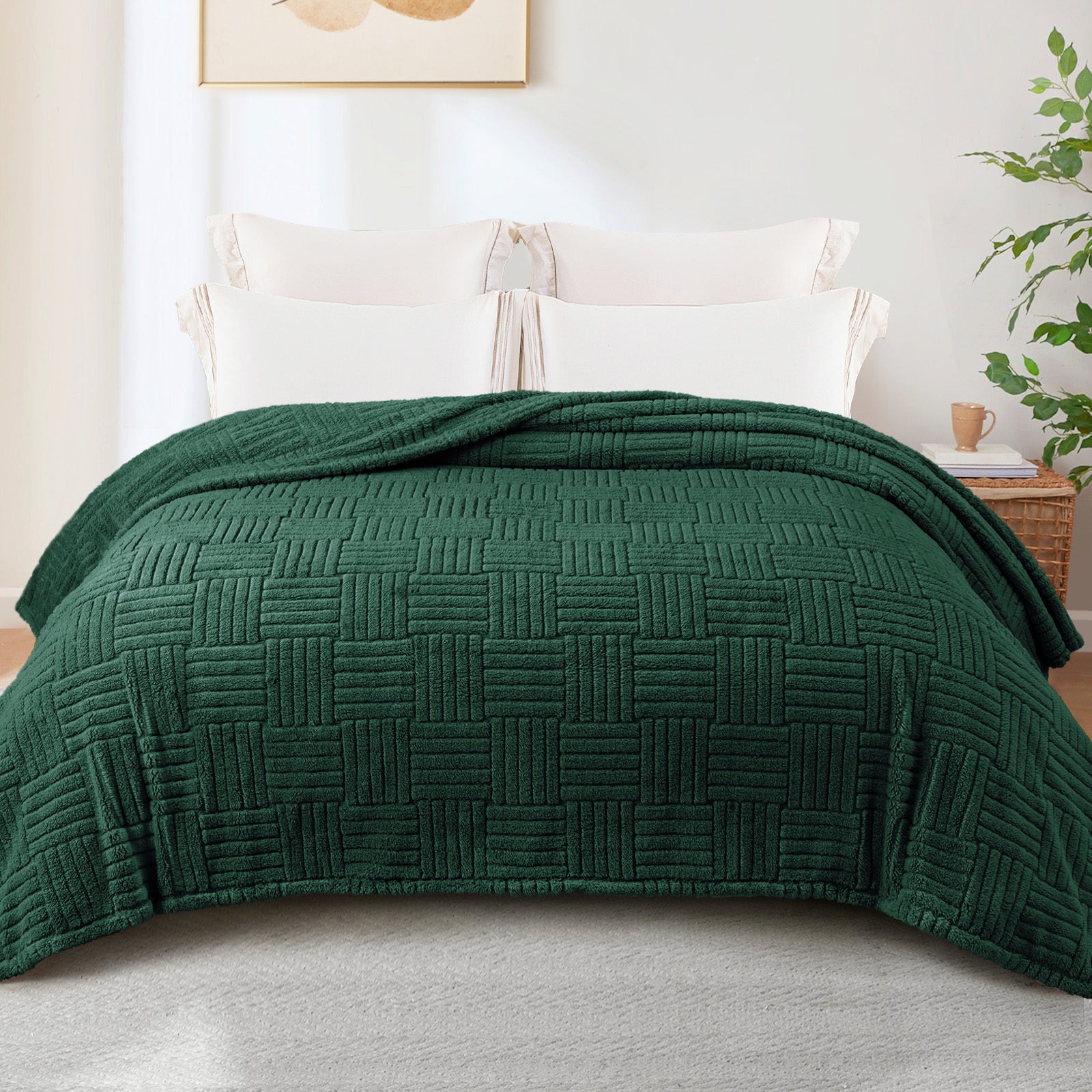 Whale Flotilla Fluffy Fleece King Size Blanket for Bed, Fuzzy Soft Cozy Exquisite Blankets with Decorative Jacquard Pattern for All Season, Warm but Lightweight, 90x104 Inch, Emerald Green