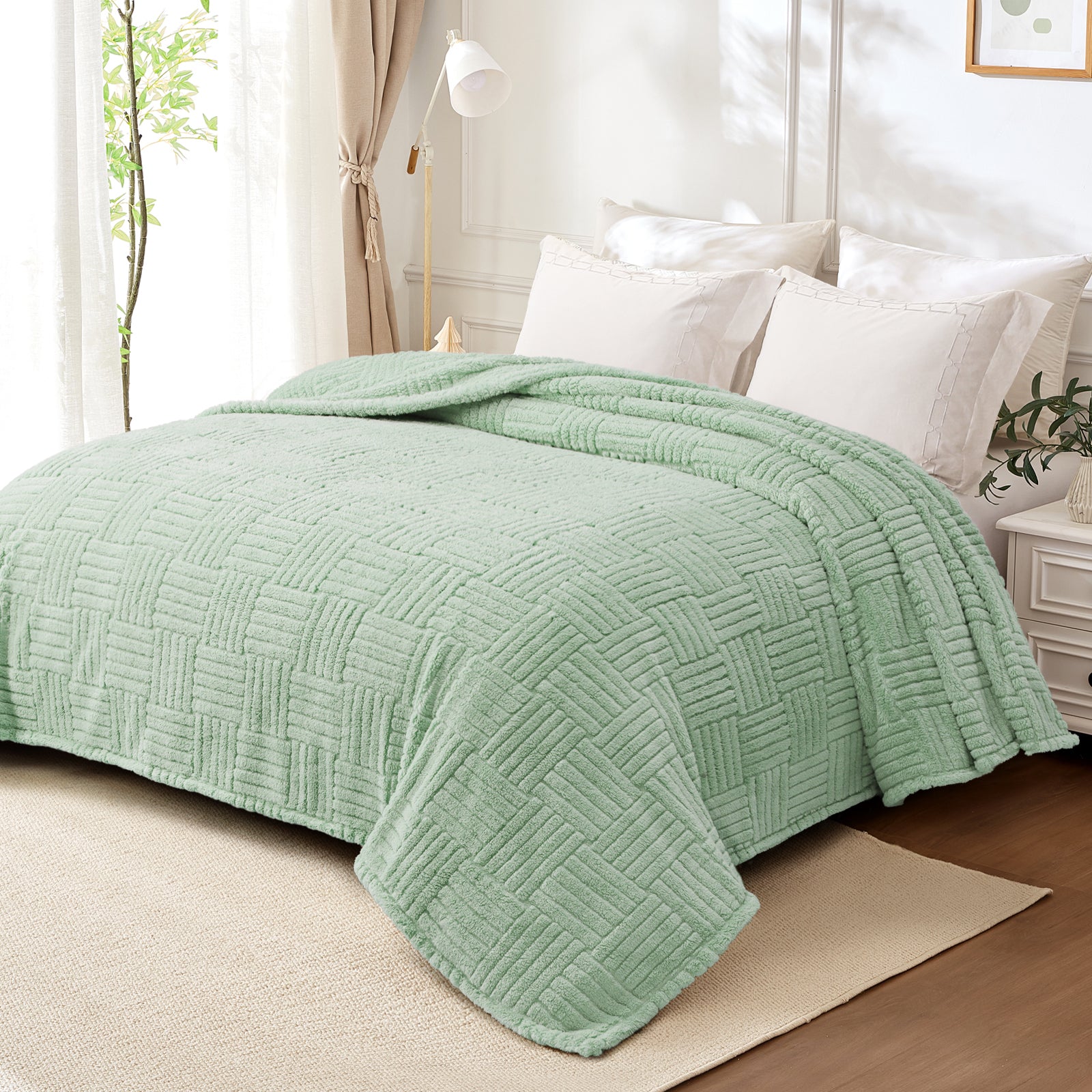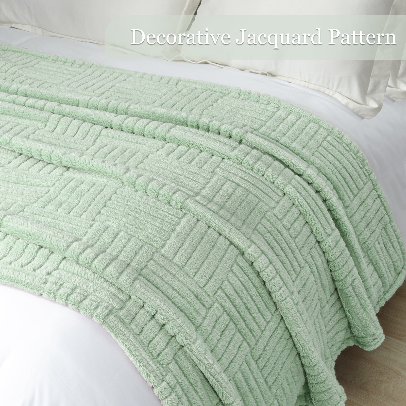 Whale Flotilla Fluffy Fleece King Size Blanket for Bed, Fuzzy Soft Cozy Exquisite Blankets with Decorative Jacquard Pattern for All Season, Warm but Lightweight, 90x104 Inch, Sage Green