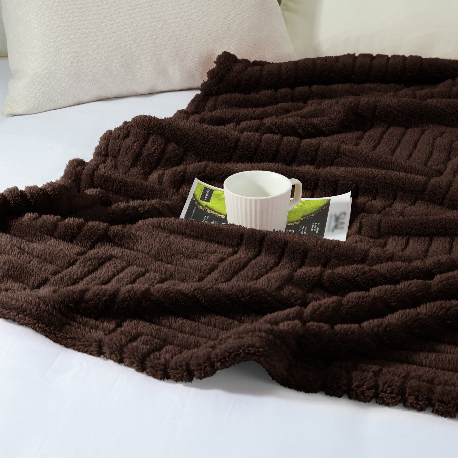Whale Flotilla Fluffy Fleece Queen Size Blanket for Bed, Fuzzy Soft Cozy Exquisite Blankets with Decorative Jacquard Pattern for All Season, Warm but Lightweight, 90x90 Inch, Coffee