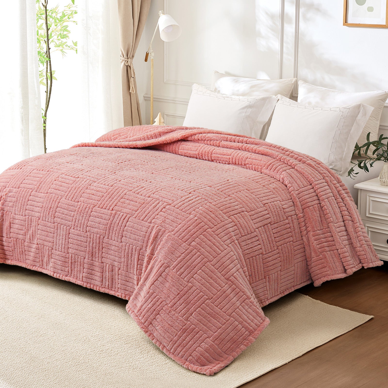 Whale Flotilla Fluffy Fleece Queen Size Blanket for Bed, Fuzzy Soft Cozy Exquisite Blankets with Decorative Jacquard Pattern for All Season, Warm but Lightweight, 90x90 Inch, Pink