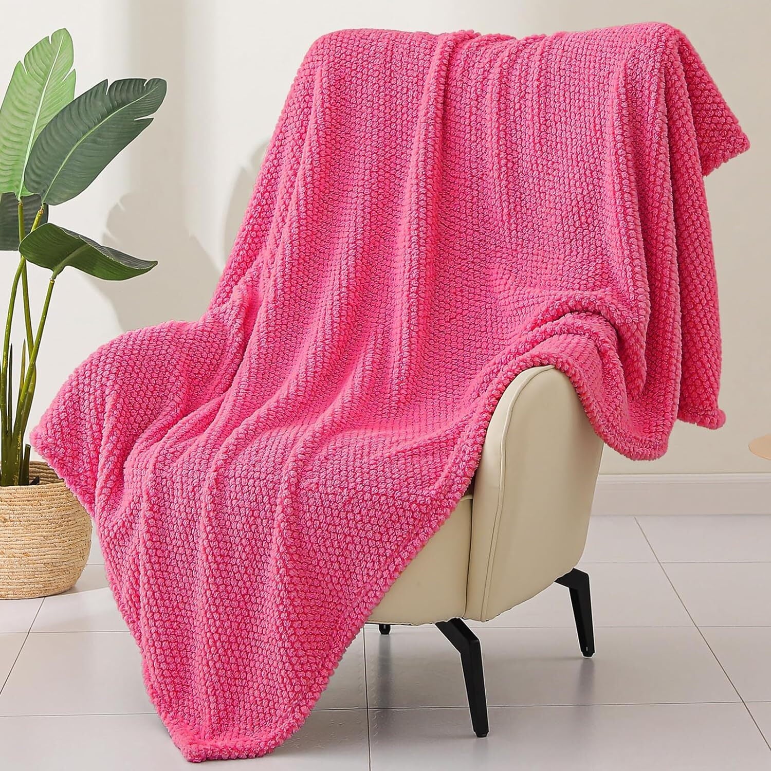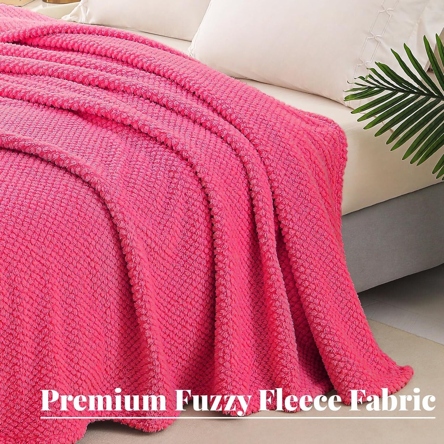 Whale Flotilla Fuzzy Fleece Throw Blanket for Couch, Fluffy Warm Soft Jacquard Blankets for Fall Winter, Lightweight and Cozy, 50x70 Inch, Hot Pink