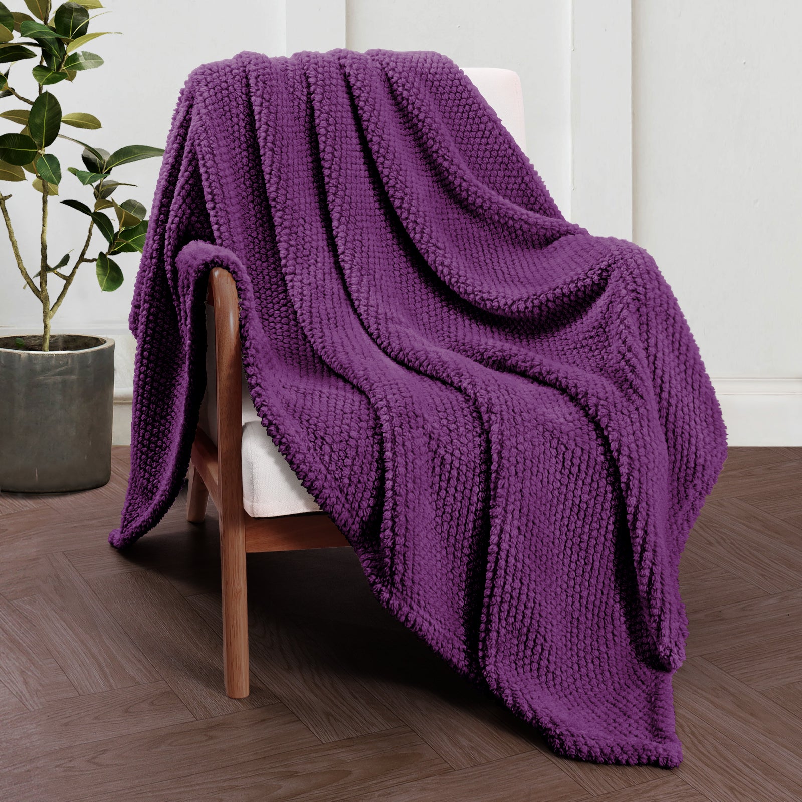 Whale Flotilla Fuzzy Fleece 50"x70" Throw Blanket for Couch, Fluffy Warm Soft Jacquard Blankets for Fall Winter, Lightweight and Cozy, Purple