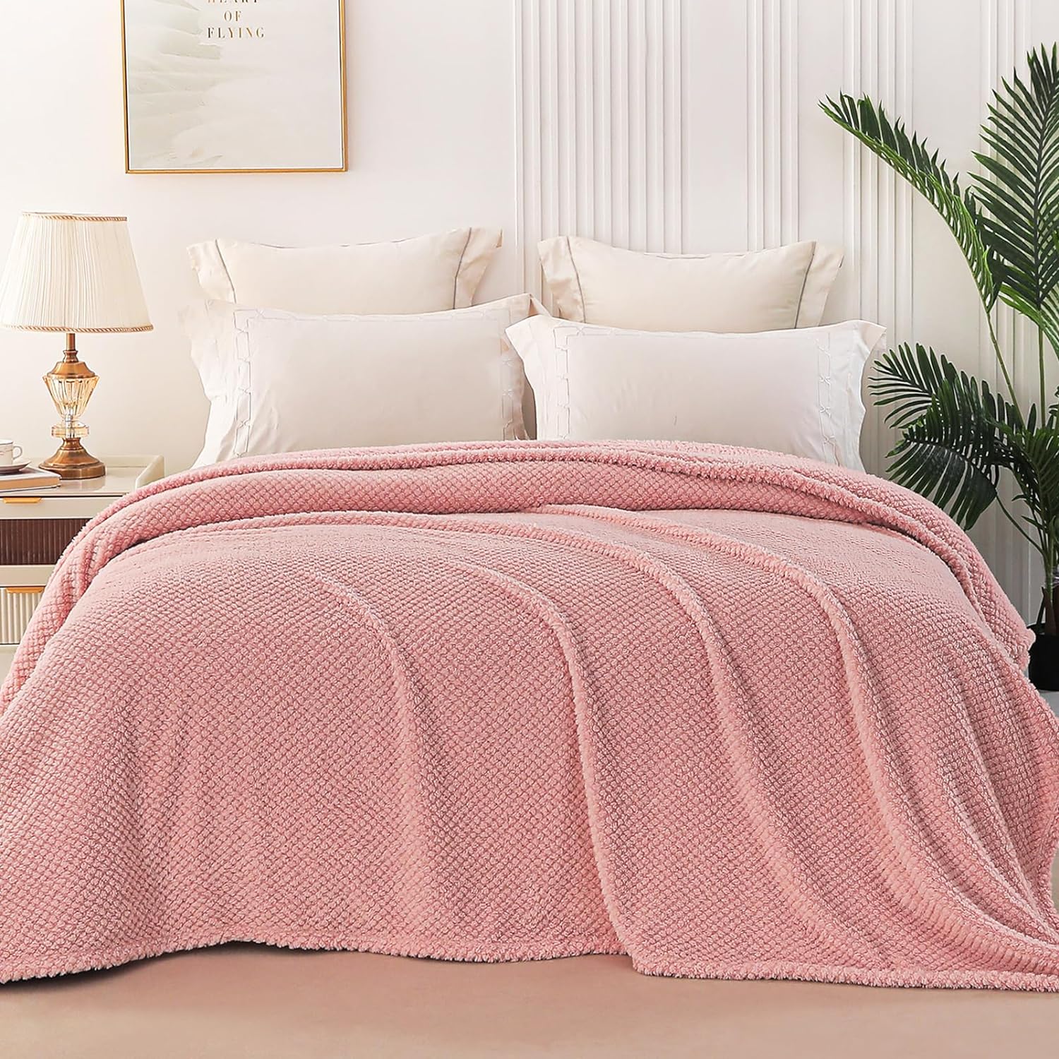 Whale Flotilla Twin Size Fuzzy Fleece Blanket, Fluffy Warm Soft Jacquard Bed Blankets for Fall Winter, Lightweight and Cozy, 60x80 Inch, Pink
