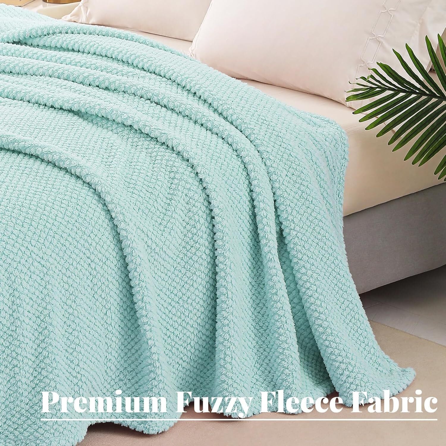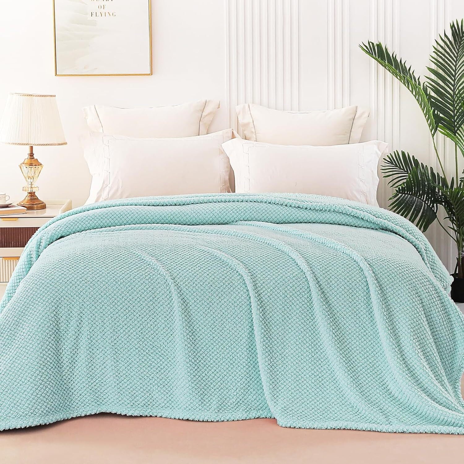 Whale Flotilla King Size Fuzzy Fleece Blanket, Fluffy Warm Soft Jacquard Bed Blankets for Fall Winter, Lightweight and Cozy, 90x104 Inch, Light Blue