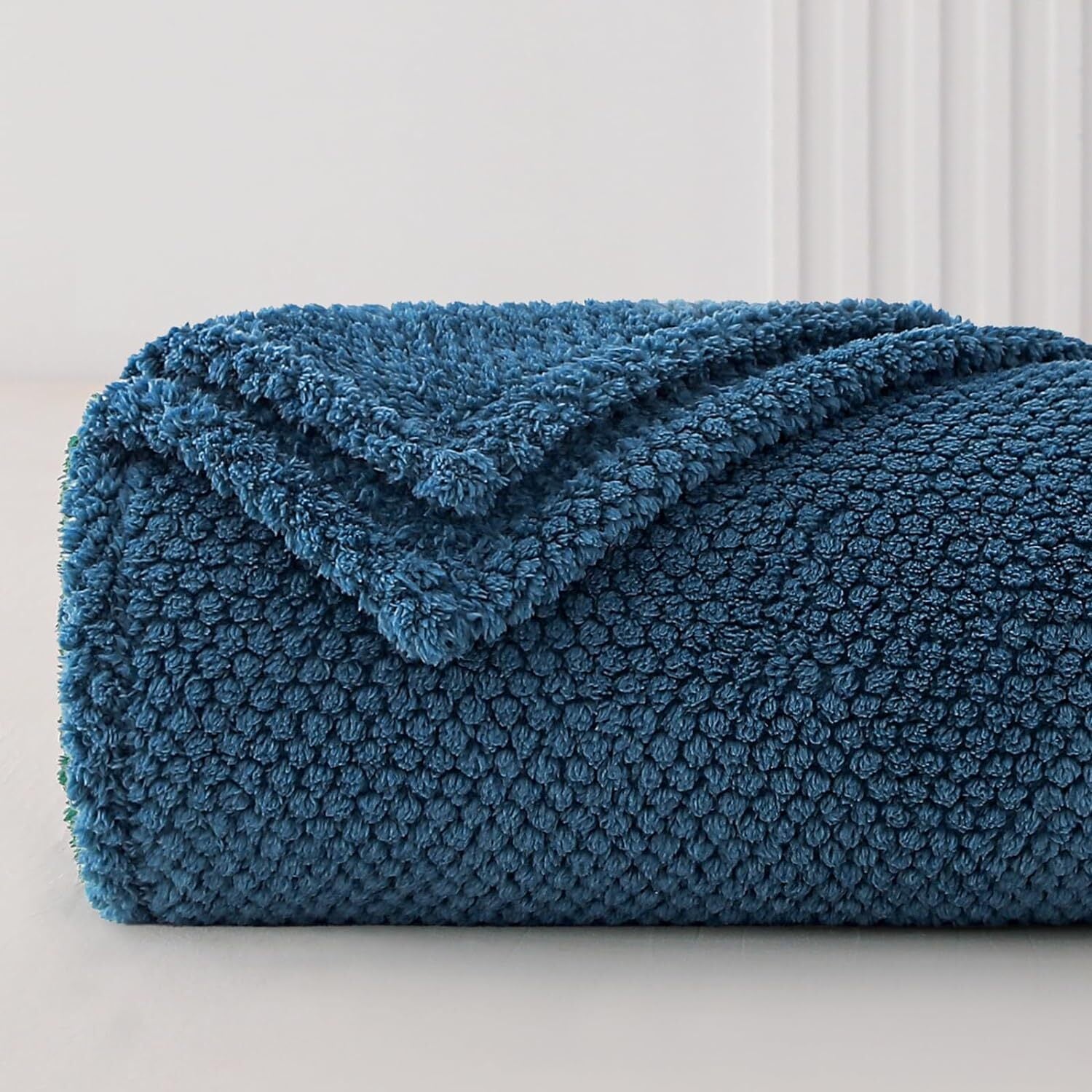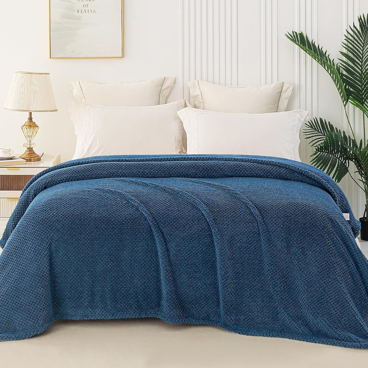 Whale Flotilla King Size Fuzzy Fleece Blanket, Fluffy Warm Soft Jacquard Bed Blankets for Fall Winter, Lightweight and Cozy, 90x104 Inch, Navy