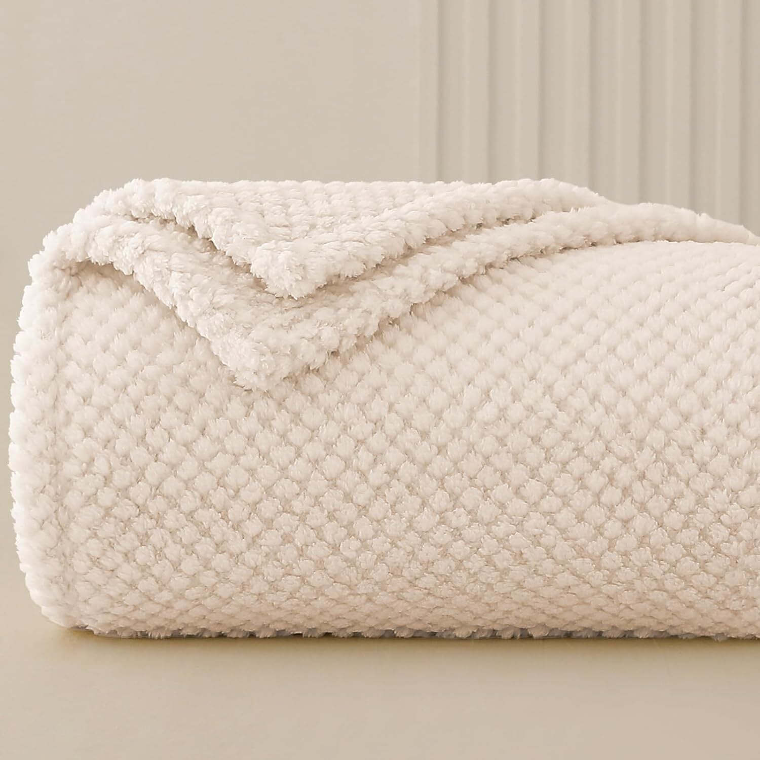 Whale Flotilla King Size Fuzzy Fleece Blanket, Fluffy Warm Soft Jacquard Bed Blankets for Fall Winter, Lightweight and Cozy, 90x104 Inch, Ivory