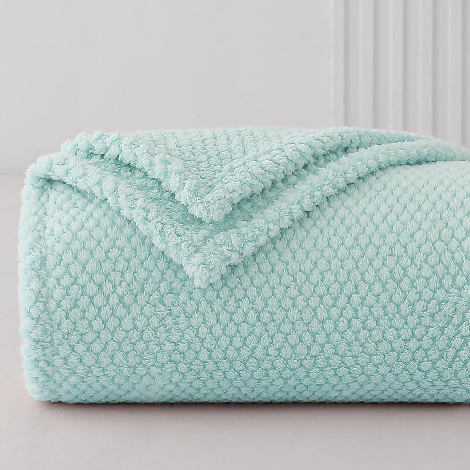 Whale Flotilla Queen Size Fuzzy Fleece Blanket, Fluffy Warm Soft Jacquard Bed Blankets for Fall Winter, Lightweight and Cozy, 90x90 Inch, Light Blue