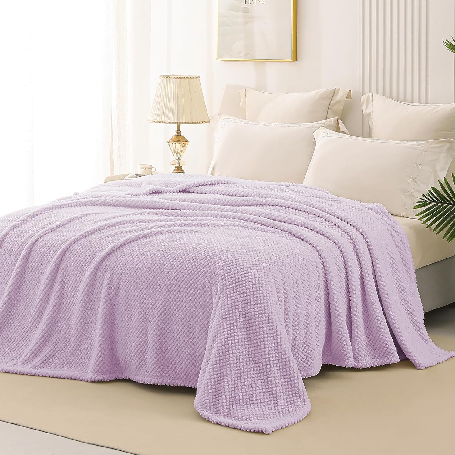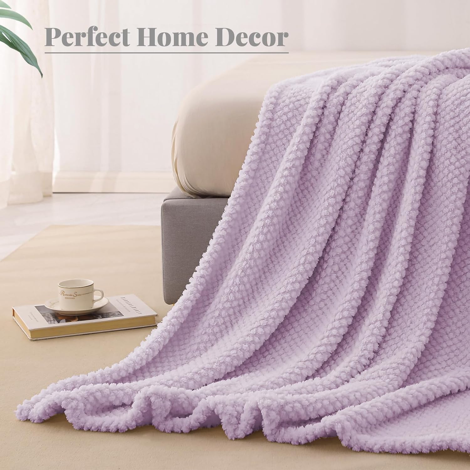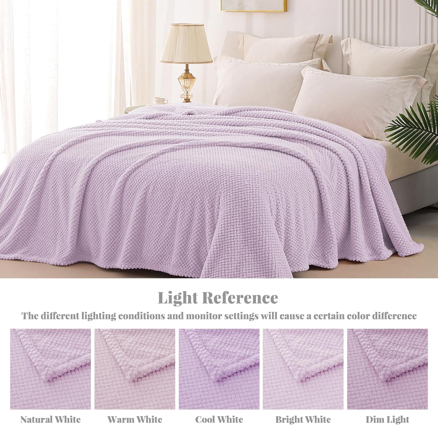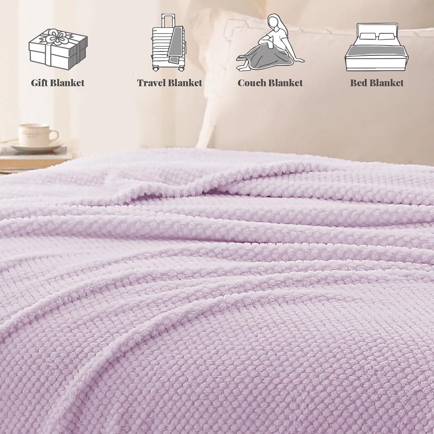 Whale Flotilla Queen Size Fuzzy Fleece Blanket, Fluffy Warm Soft Jacquard Bed Blankets for Fall Winter, Lightweight and Cozy, 90x90 Inch, Lilac