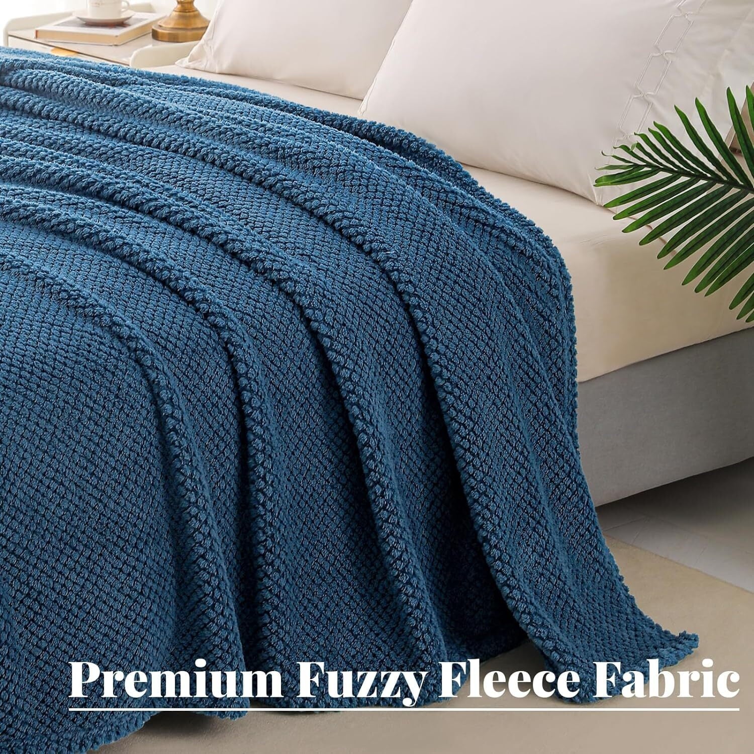 Whale Flotilla 90"x90" Queen Size Fuzzy Fleece Blanket, Fluffy Warm Soft Jacquard Bed Blankets for Fall Winter, Lightweight and Cozy, Navy