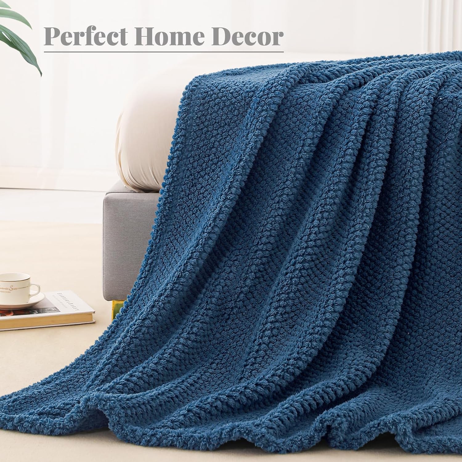 Whale Flotilla Queen Size Fuzzy Fleece Blanket, Fluffy Warm Soft Jacquard Bed Blankets for Fall Winter, Lightweight and Cozy, 90x90 Inch, Navy