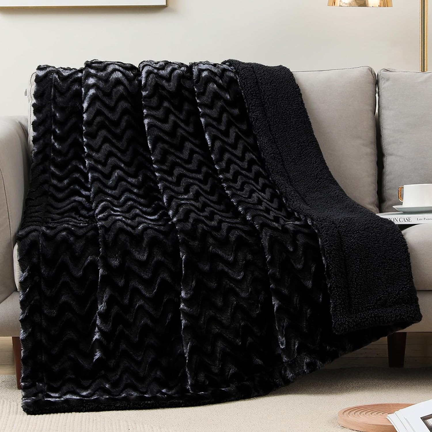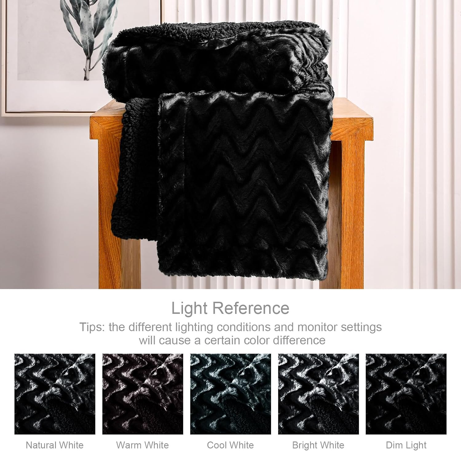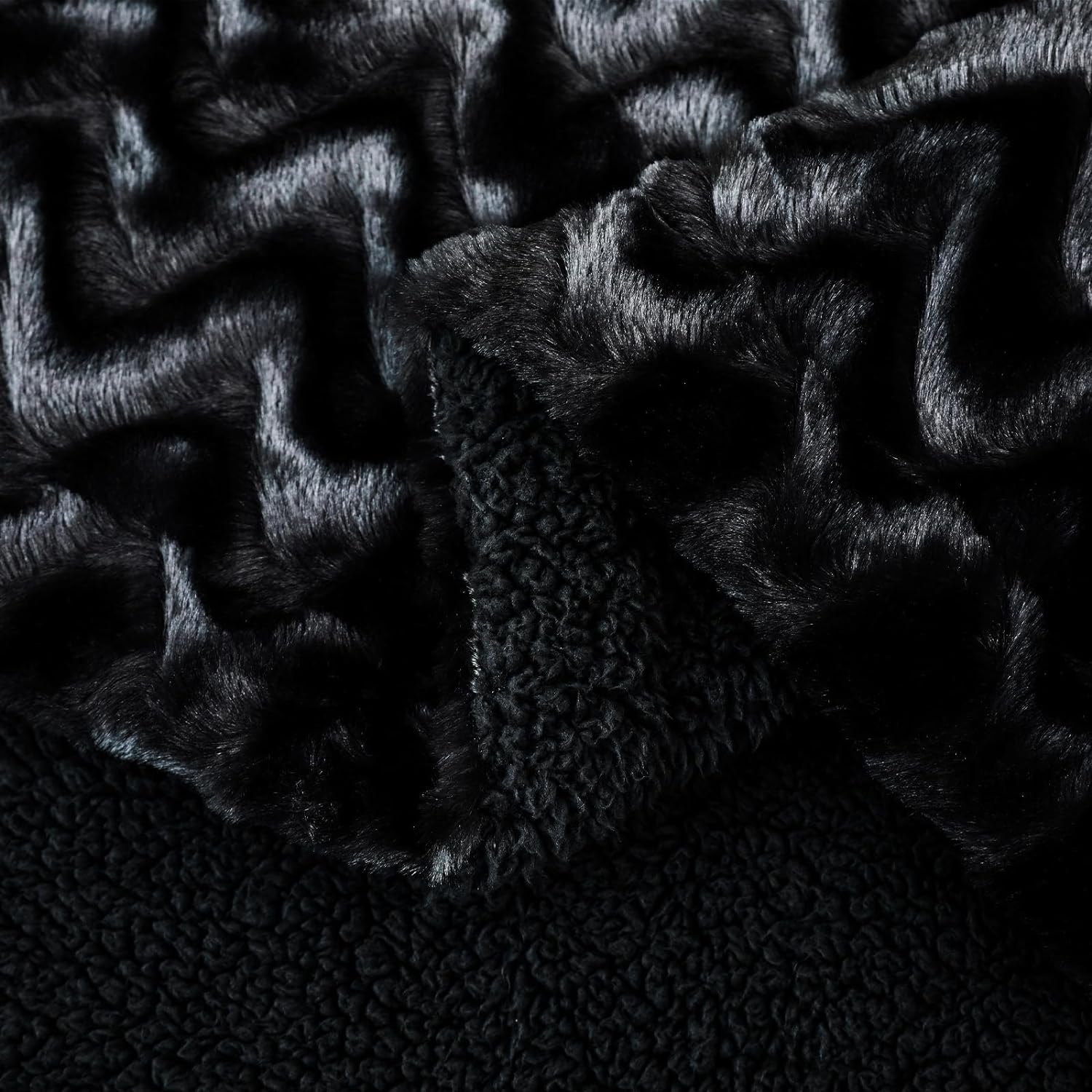 Whale Flotilla Faux Fur Sherpa Throw Blanket for Couch Sofa Bed, Cozy Reversible Fuzzy Fluffy Plush Throws Stylish Blankets for Winter Fall, Warm and Soft, 50x60 Inch, Black