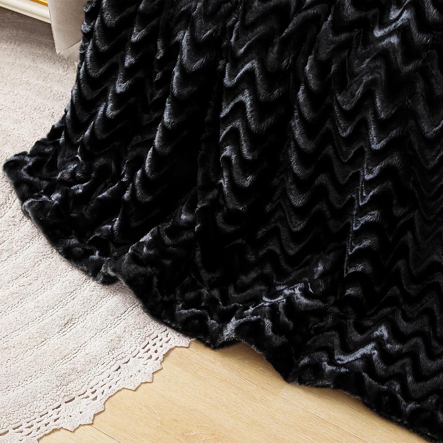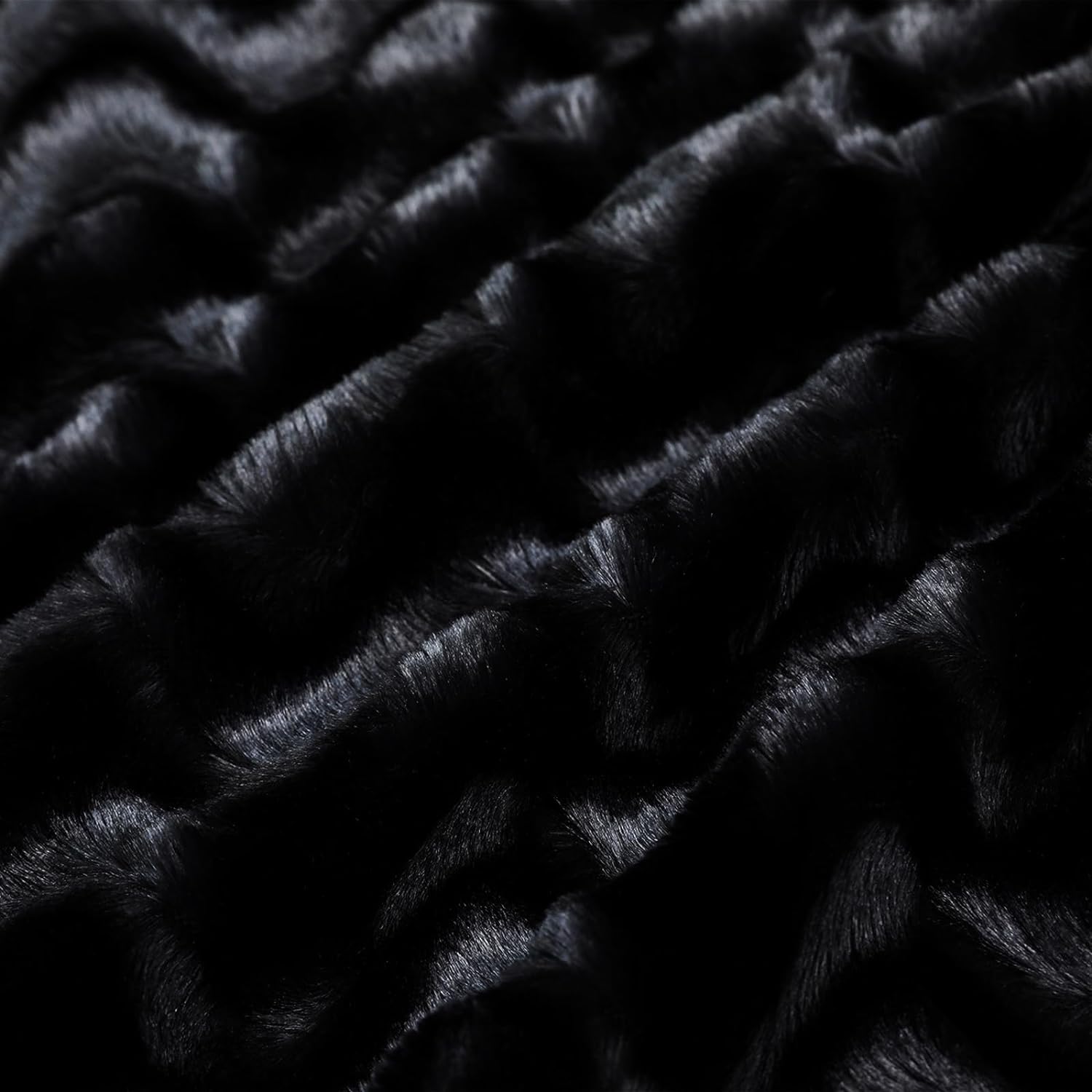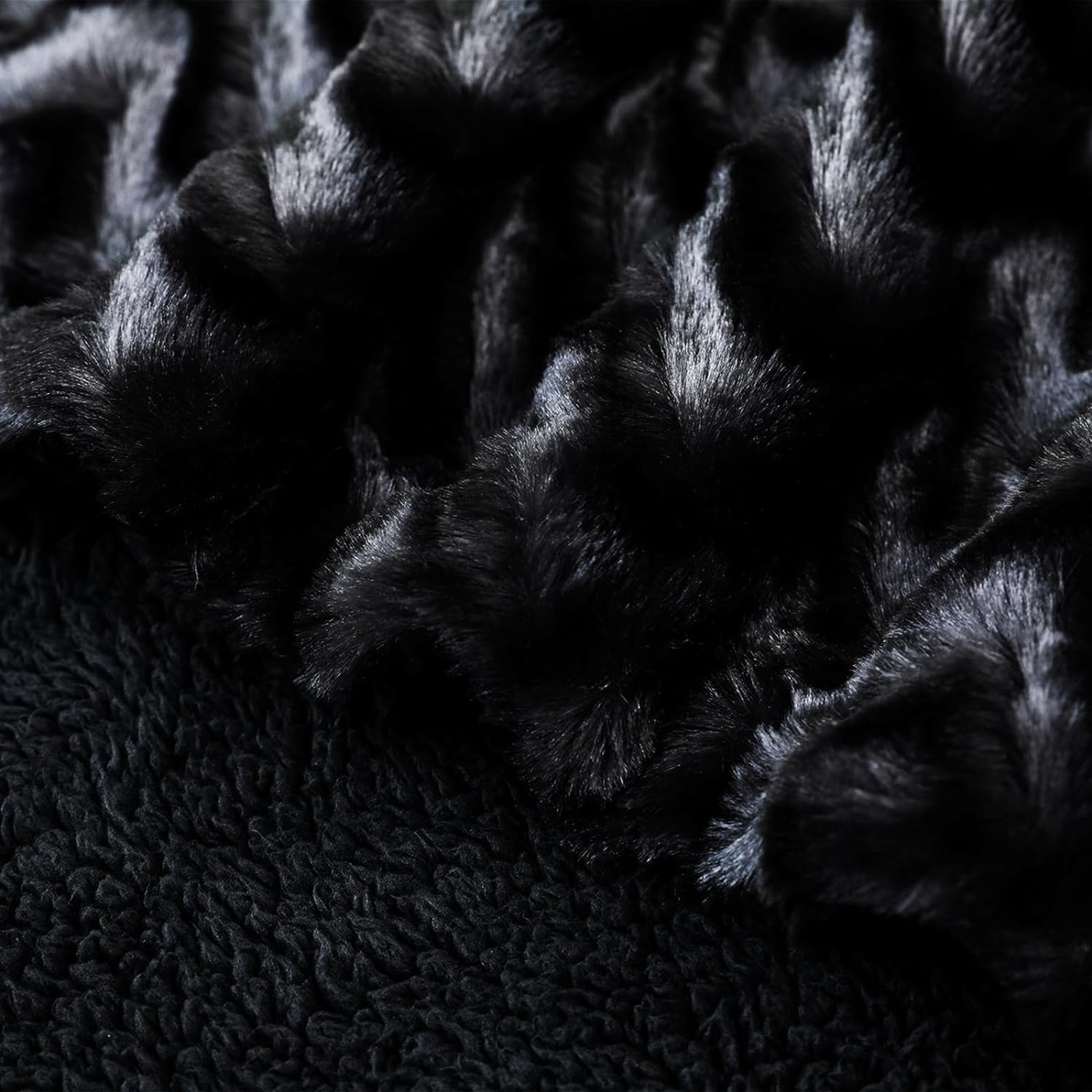 Whale Flotilla Faux Fur Sherpa Throw Blanket for Couch Sofa Bed, Cozy Reversible Fuzzy Fluffy Plush Throws Stylish Blankets for Winter Fall, Warm and Soft, 50x60 Inch, Black