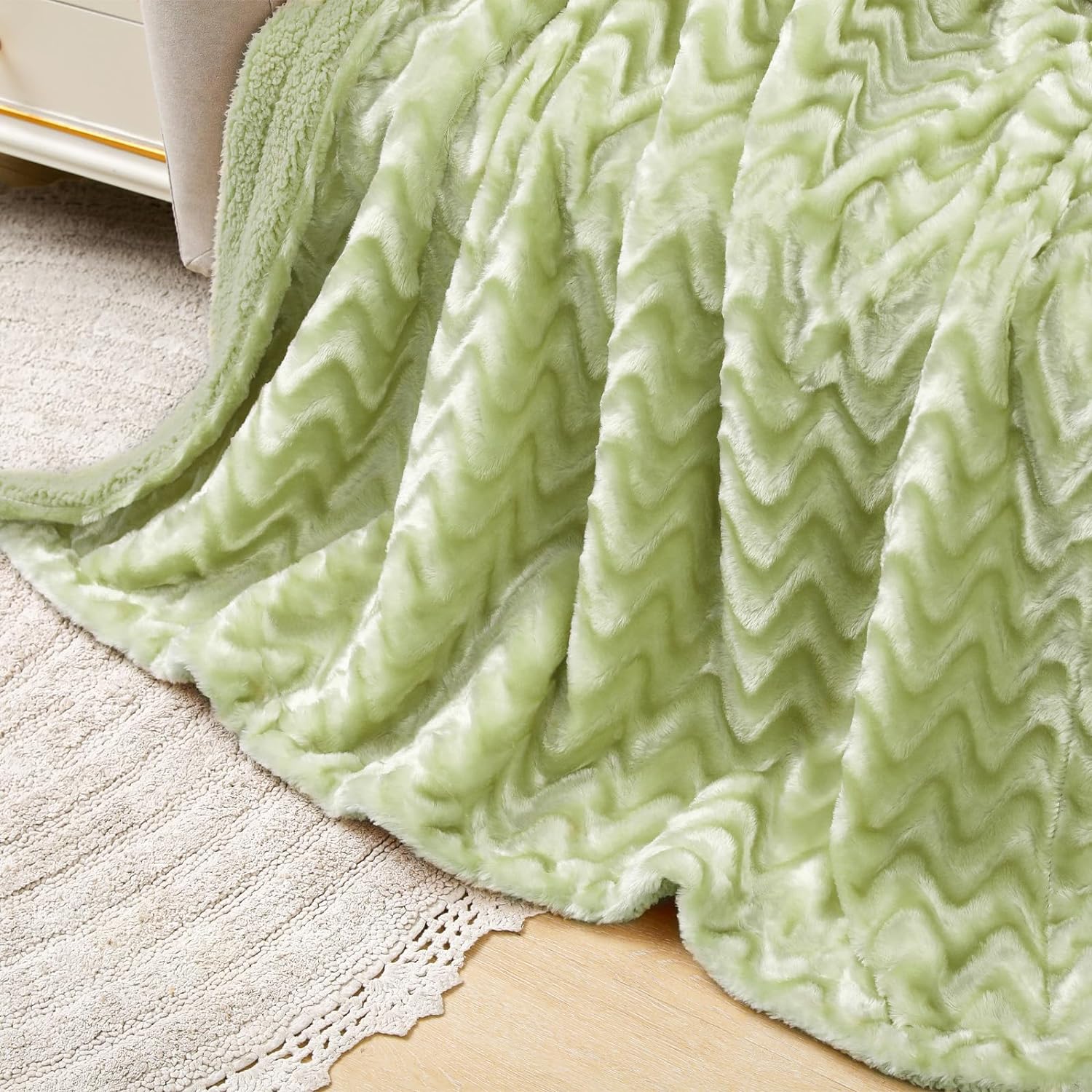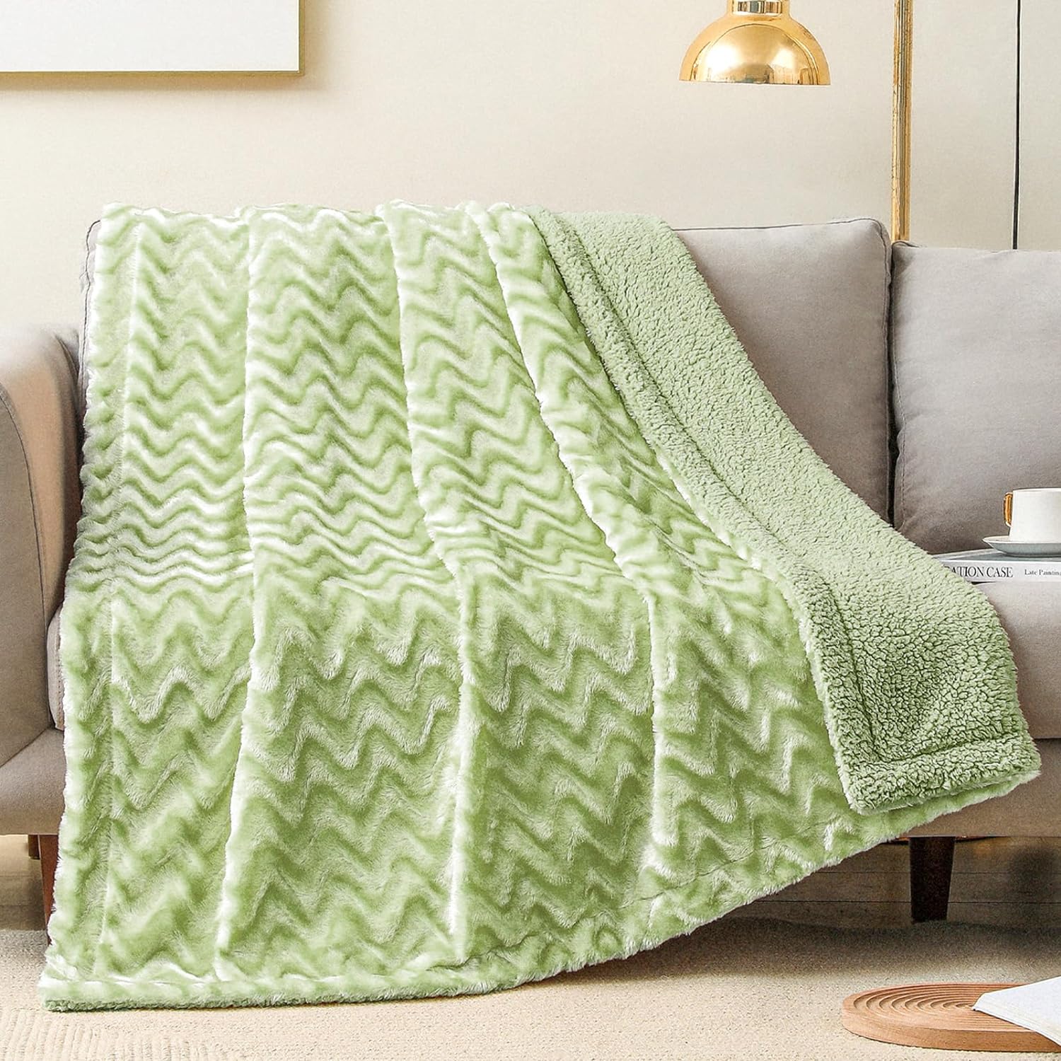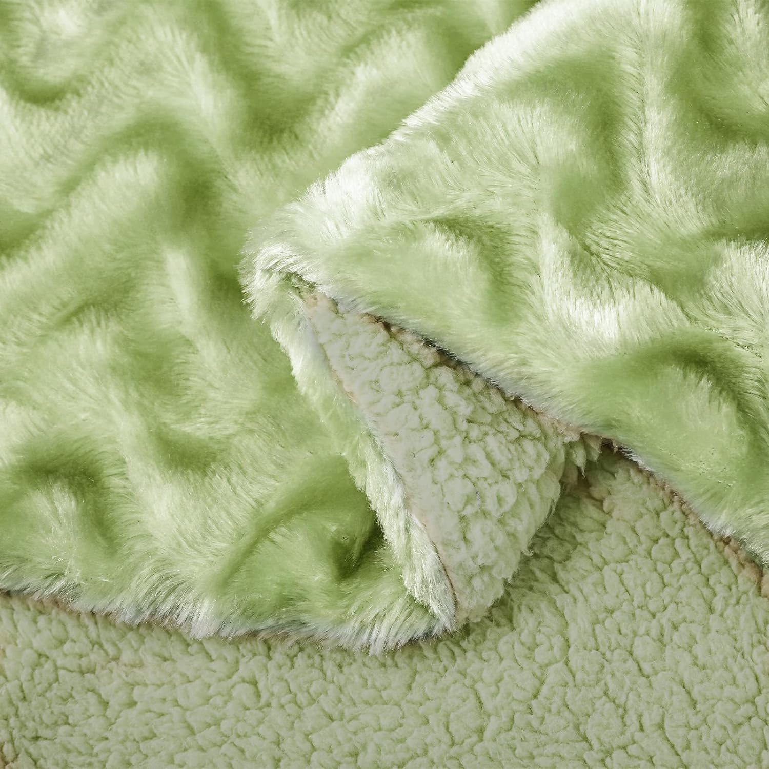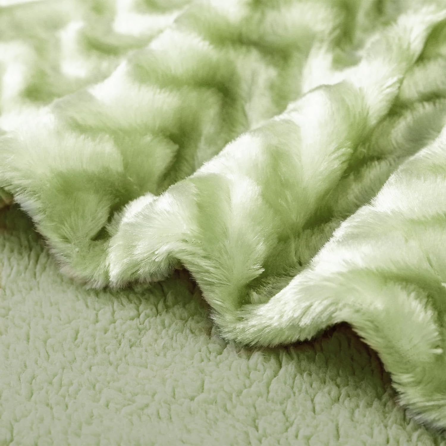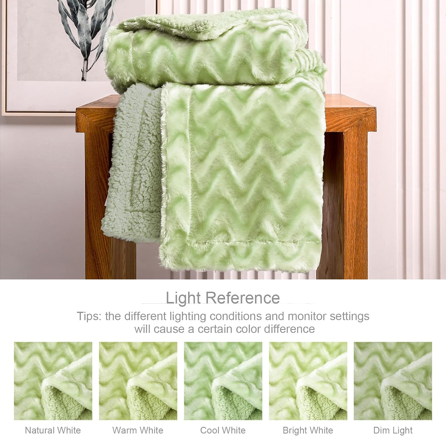 Whale Flotilla Faux Fur Sherpa Throw Blanket for Couch Sofa Bed, Cozy Reversible Fuzzy Fluffy Plush Throws Stylish Blankets for Winter Fall, Warm and Soft, 50x60 Inch, Light Green