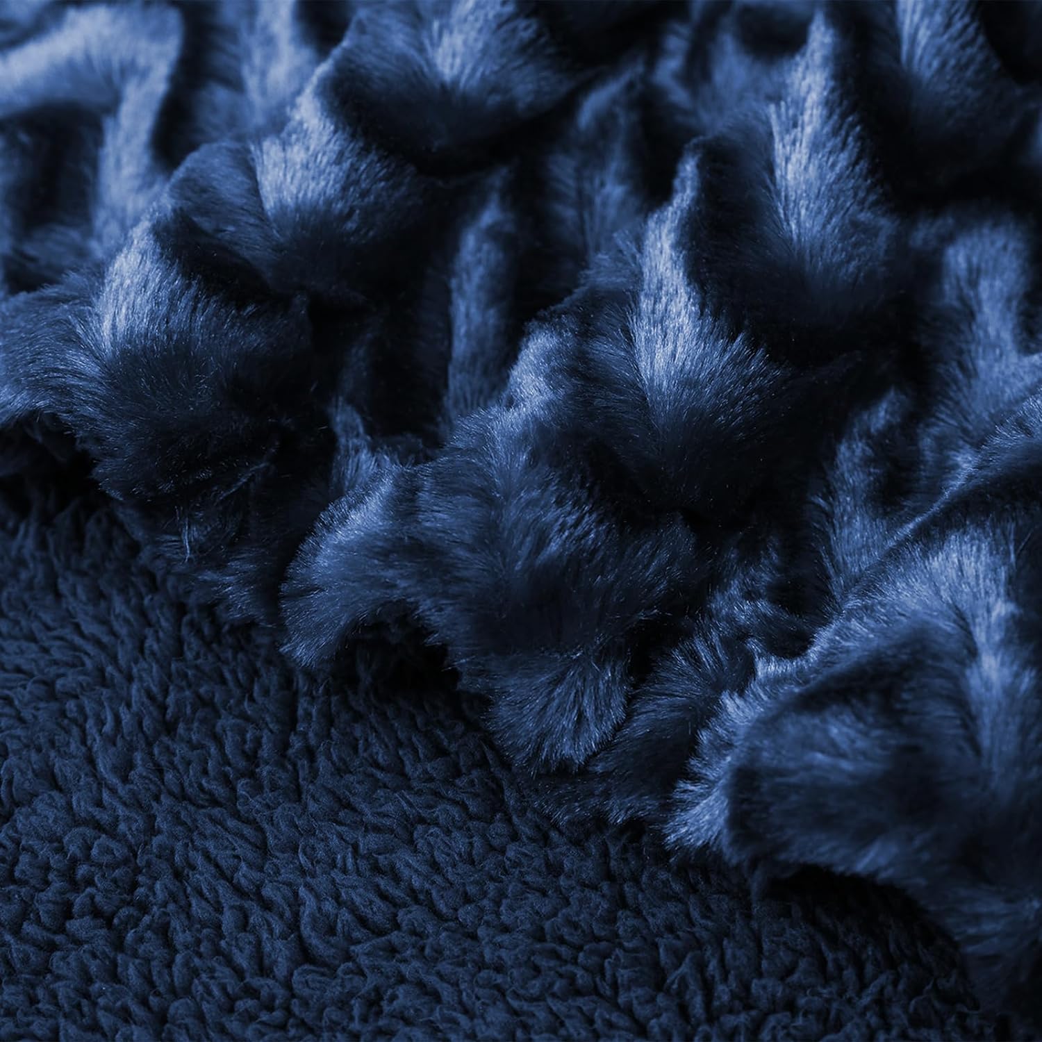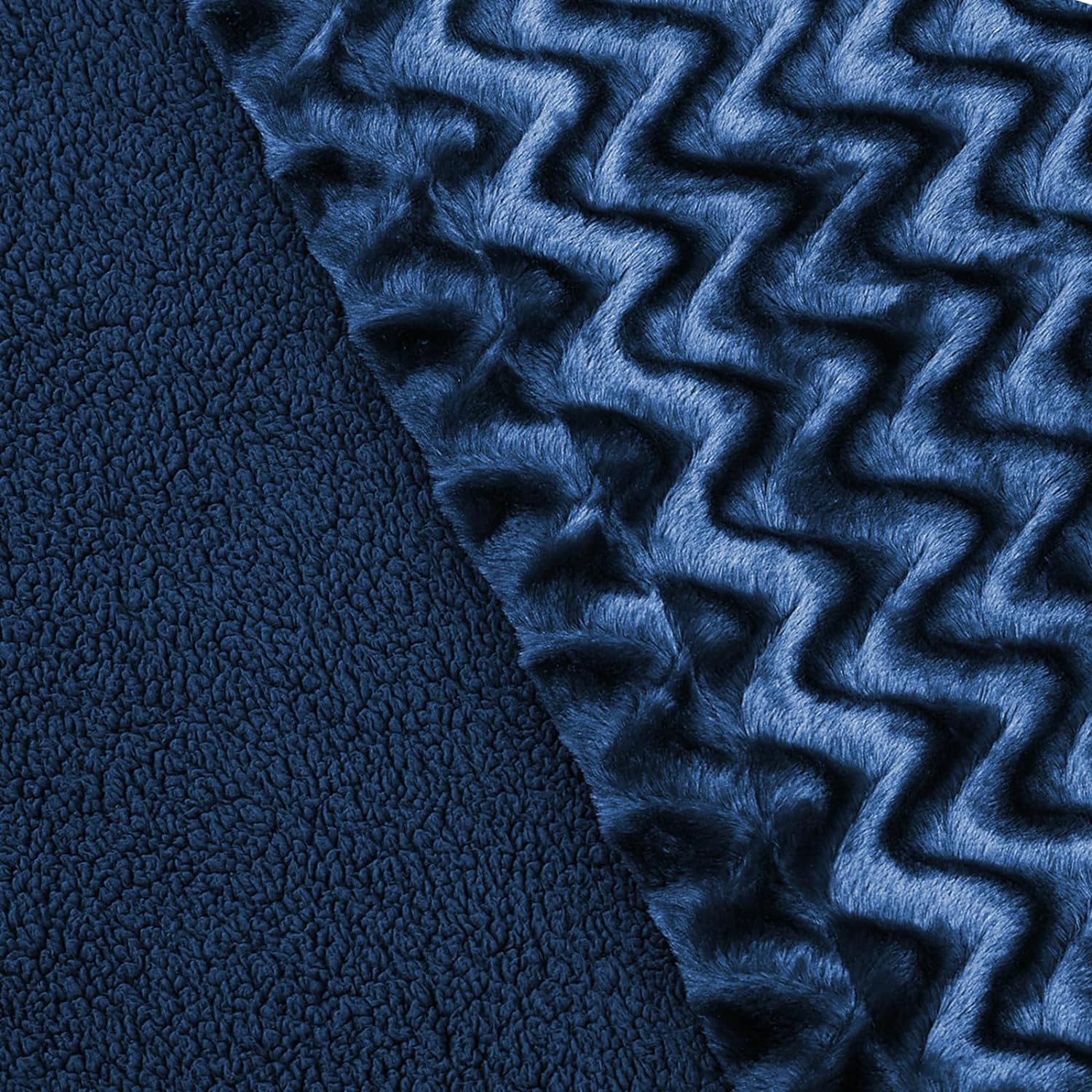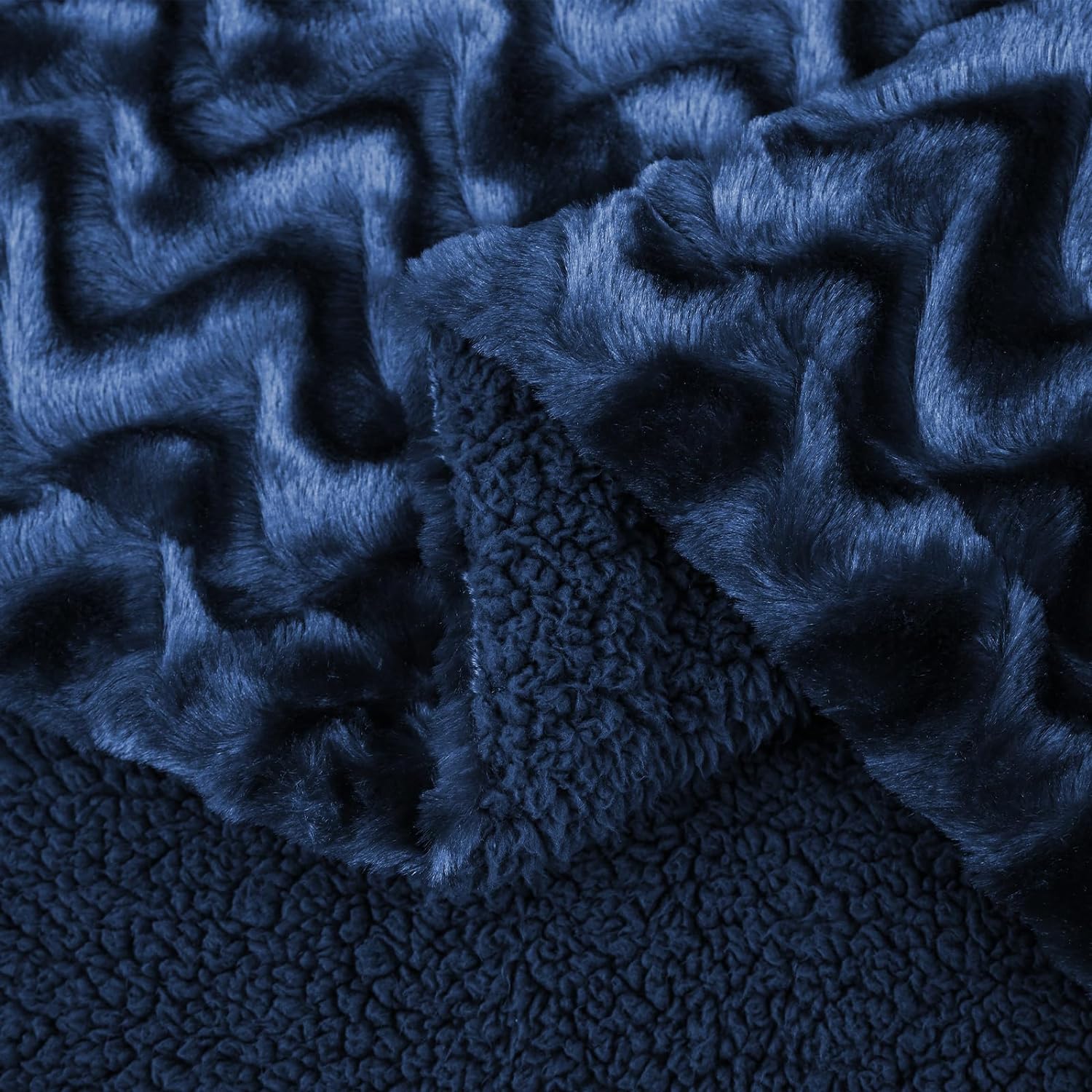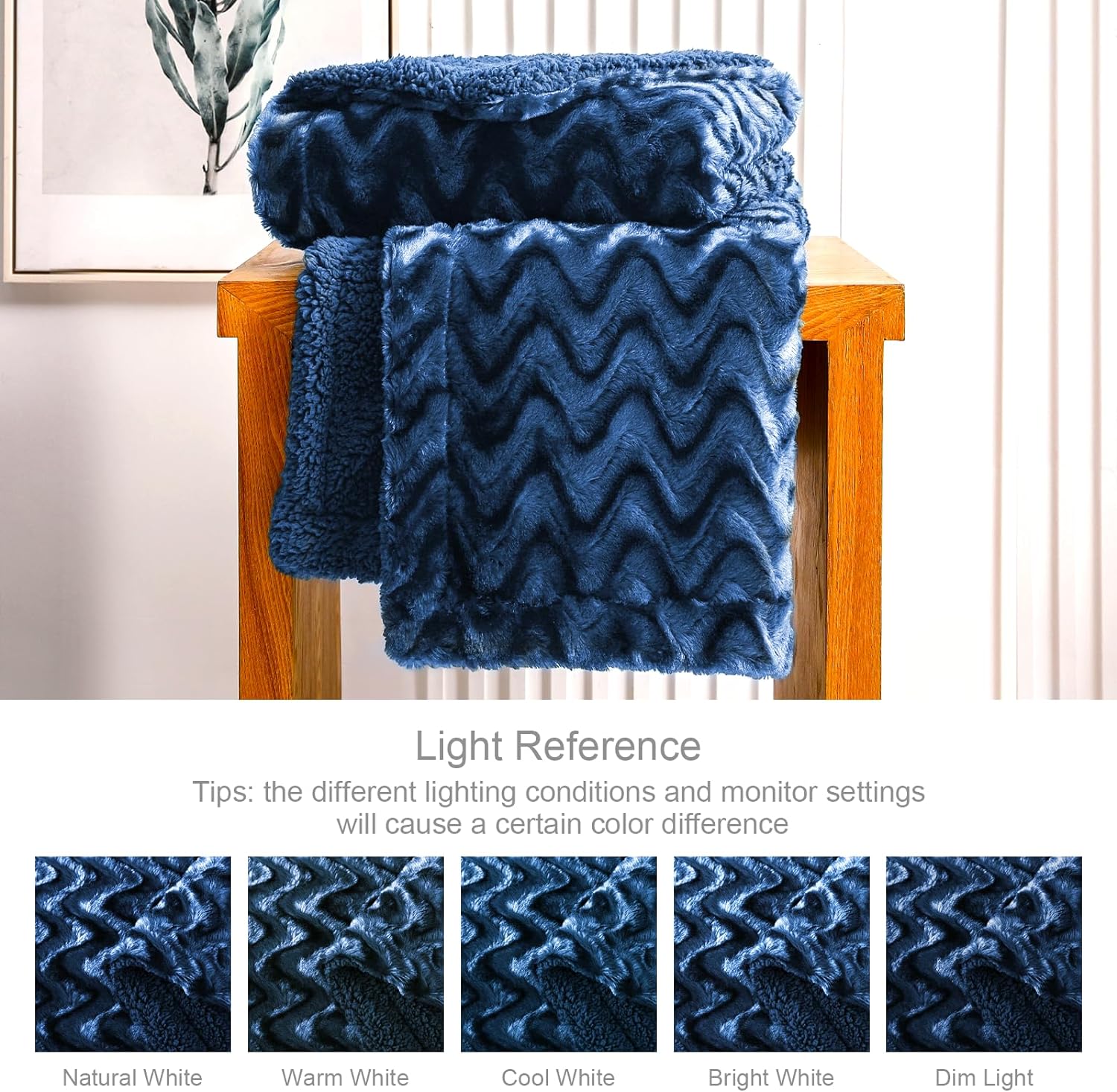 Whale Flotilla Faux Fur Sherpa Throw Blanket for Couch Sofa Bed, Cozy Reversible Fuzzy Fluffy Plush Throws Stylish Blankets for Winter Fall, Warm and Soft, 50x60 Inch, Navy Blue