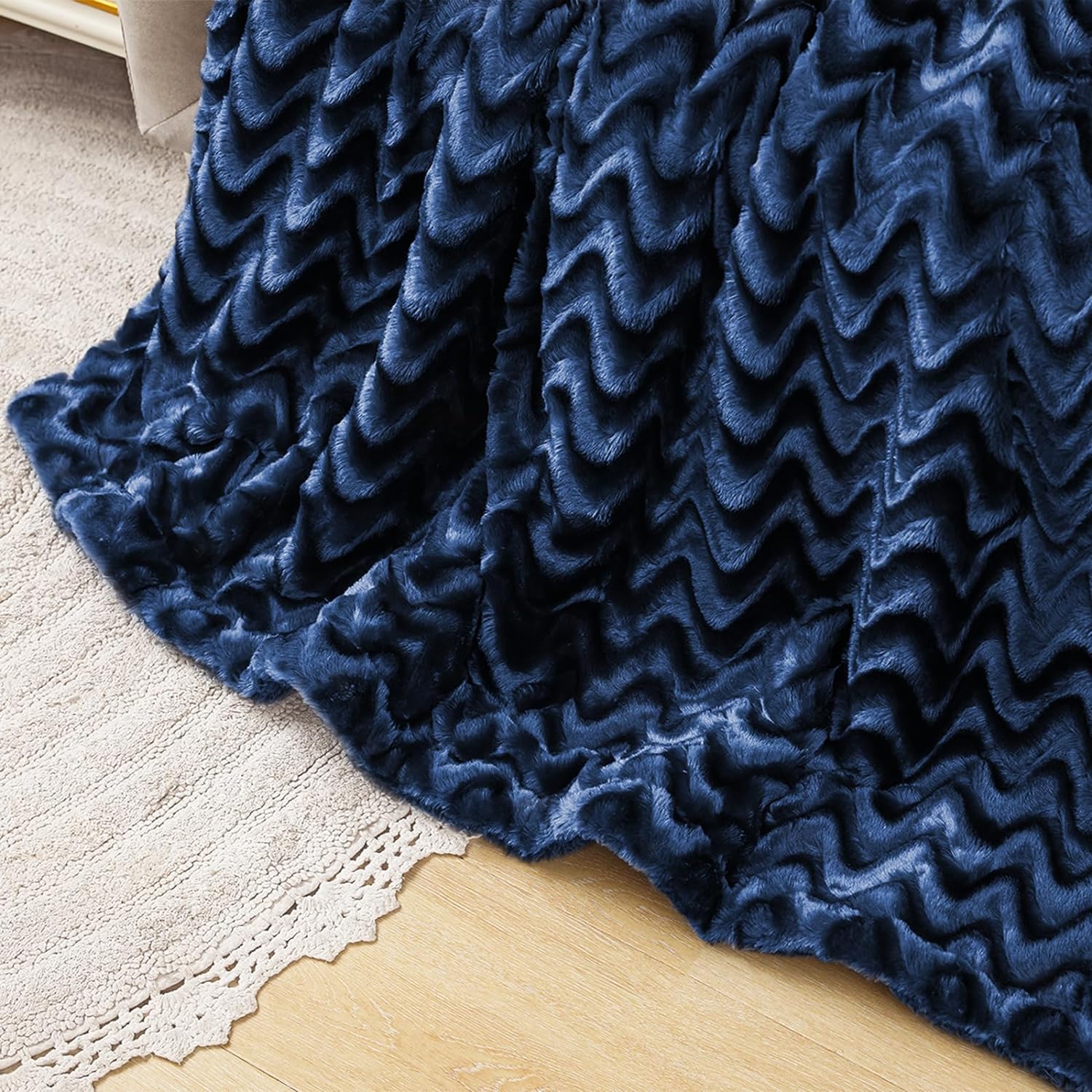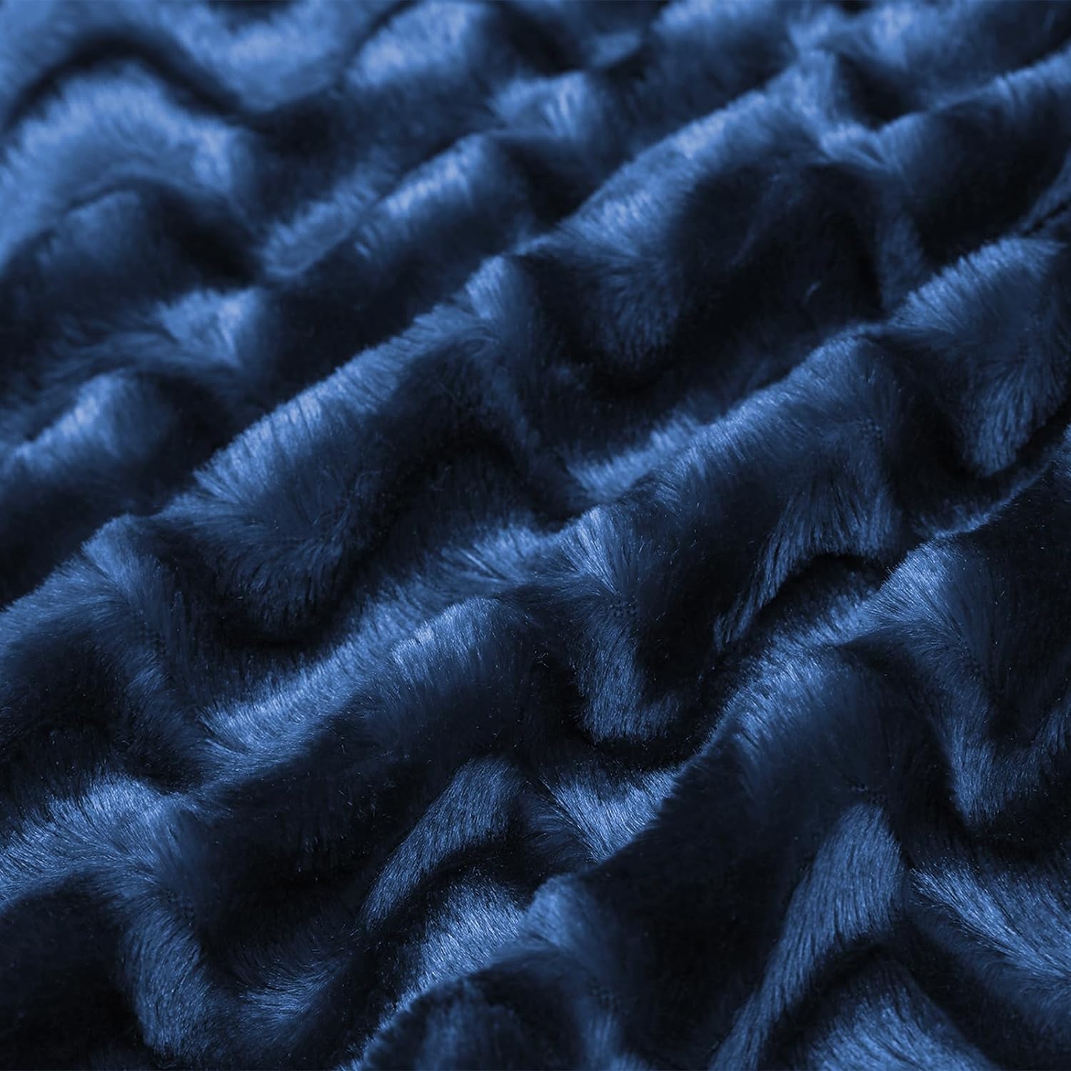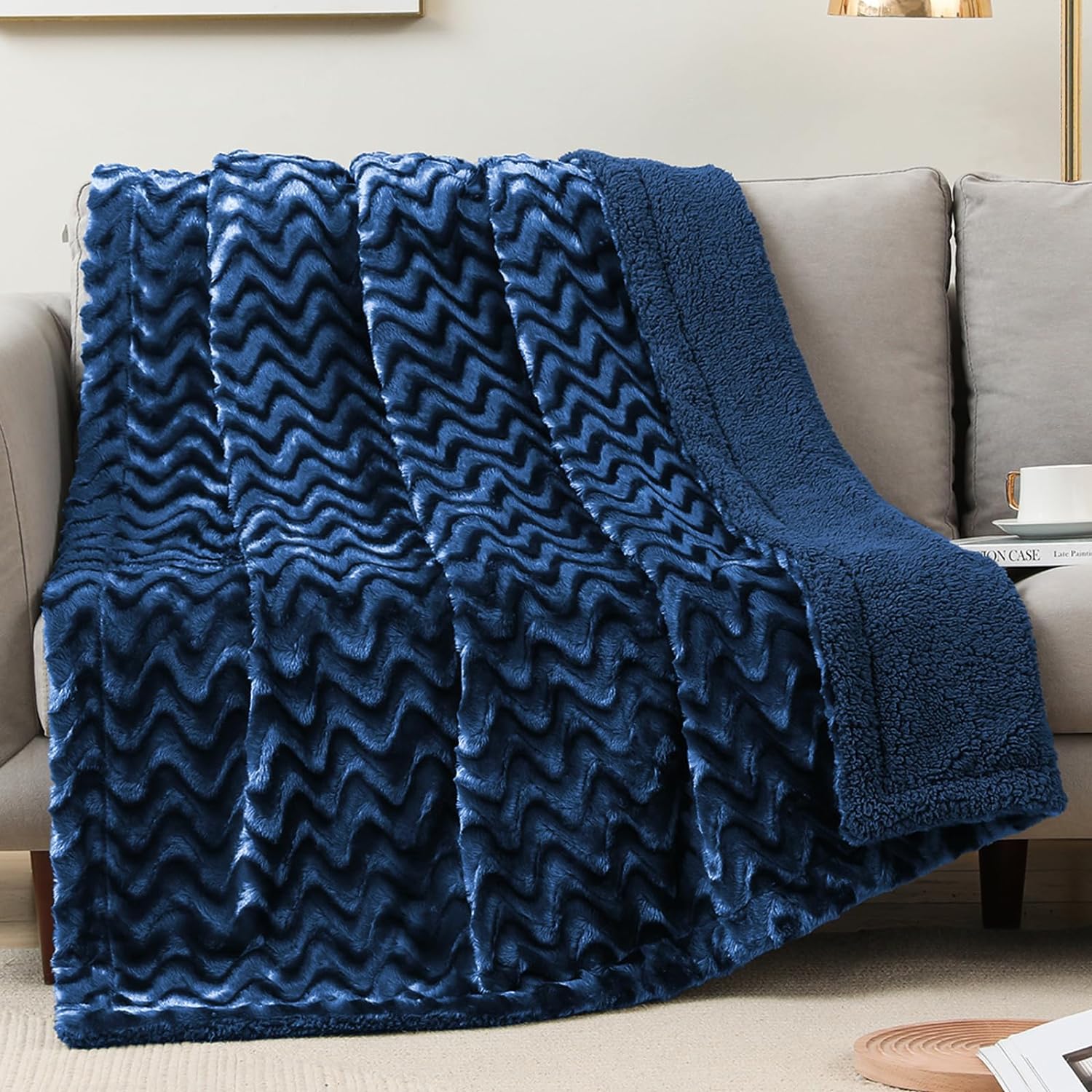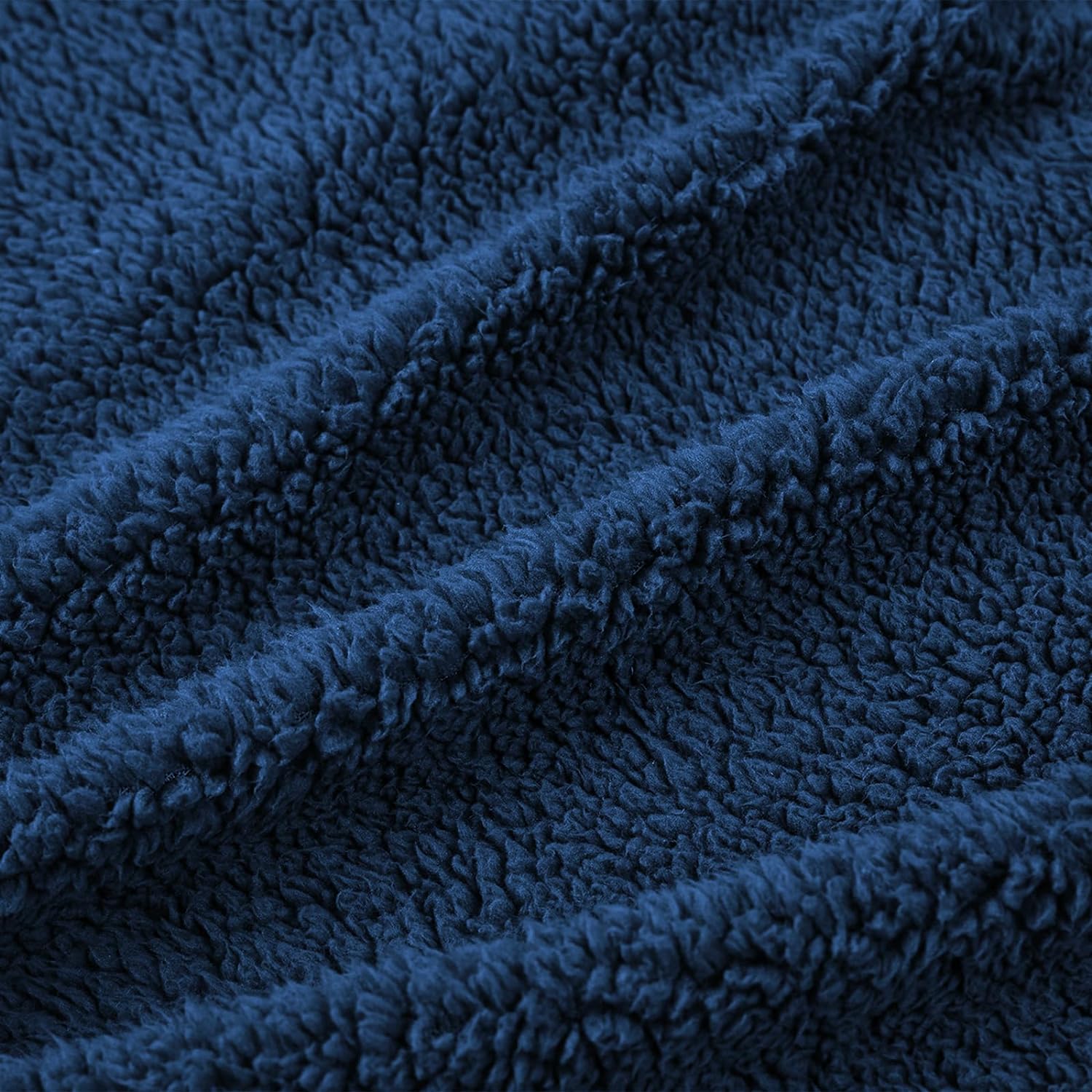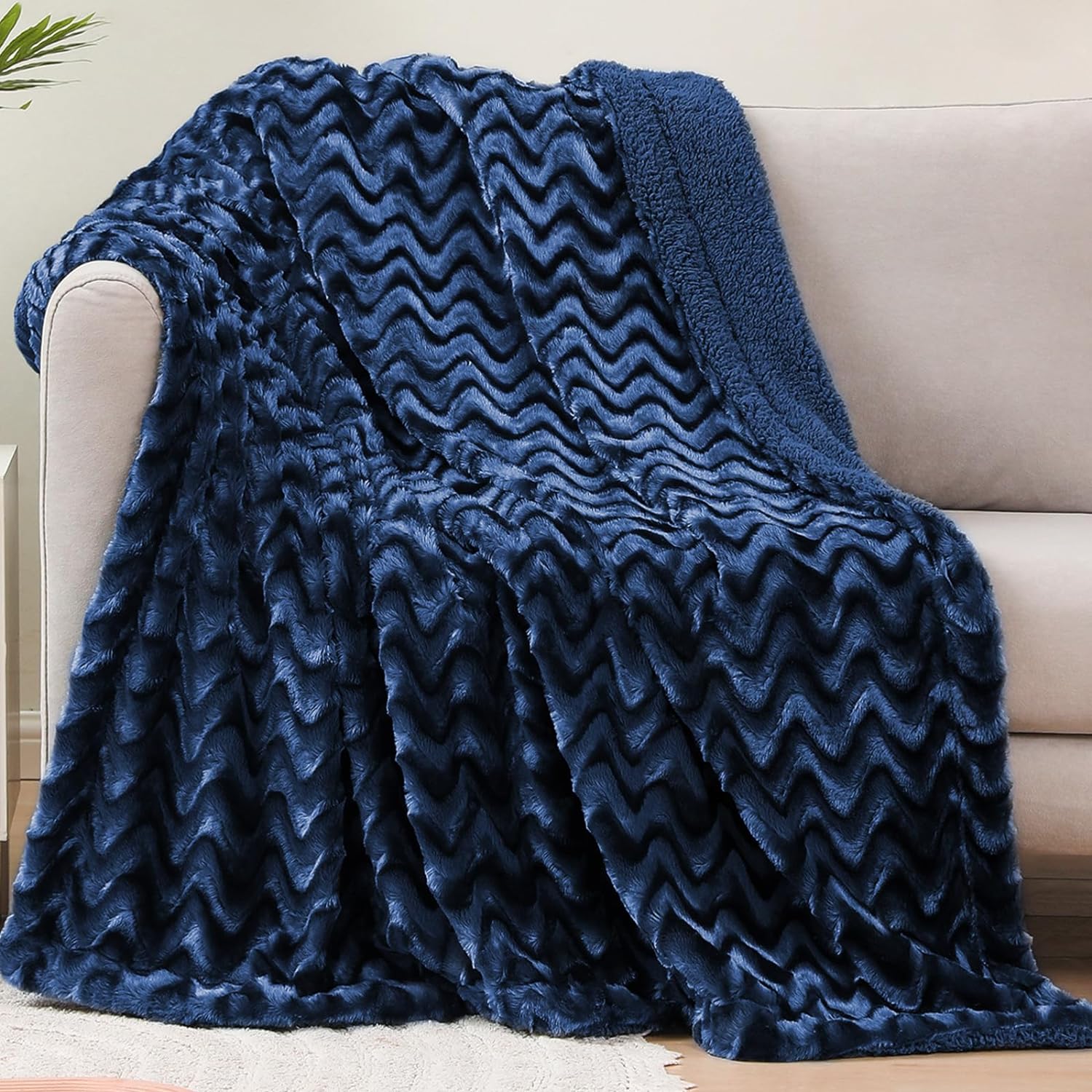 Whale Flotilla Faux Fur Sherpa Throw Blanket for Couch Sofa Bed, Cozy Reversible Fuzzy Fluffy Plush Throws Stylish Blankets for Winter Fall, Warm and Soft, 50x60 Inch, Navy Blue