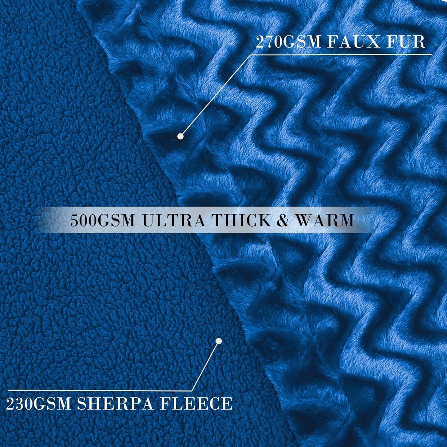 Soft Material: Are you looking for something soft, warm, silky and plush? This reversible sherpa blanket checks all the boxes. It boasts double-layered design that delivers twice the coziness and softness you'd get from an ordinary blanket. One side is lined with 270GSM soft faux fur, and the other is crafted from skin-friendly 230GSM sherpa fleece. Reversible design brings your living room a comforting and luxurious vibe.Modern Design: Adopted advanced printing and dyeing technology, this fleece blanket shines with metallic luster under the light. Flowing wave-like pattern and subtle ruching on the top side give this silky blanket a gentle ripple effect. Elegant and decent texture are fully displayed in this simple and generous design-a perfect pick for your home decor!Versatile Usages: The luxurious sherpa blanket is perfect for snuggling up on the couch and sofa, wrapping up in front of the fire and adding an extra layer of cozy warmth to your bed. Or, just throw it over your shoulder and wear outside as a stole. Add a dash of luxury to your home with this fluffy and super warn blanket is also a nice option.Easy Care: Please shake the blanket gently after taking it from the compact package, so as to remove floating lints and make it be more fluffy. Durable material makes it hold up well in the wash. Machine wash in cold water, line dry. Easy to clean and maintenance for long time use.Intimate Customer Service: We strive for providing you a satisfactory shopping experience, and pay much attention to your real feelings.If you have any problems,concerns or suggestions, please feel free to tell us. We have professional customer service team to offer round-the-clock online help for you.